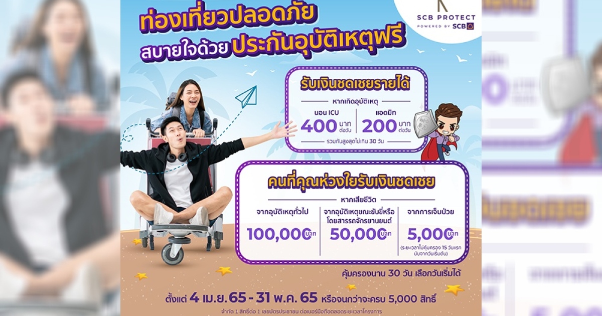 ไทยพาณิชย์ โพรเทค อัดโปรโมชั่นแรงรับไตรมาส 2 ตอกย้ำความปังด้วยประกันโรคร้ายแรงใหม่ล่าสุด แจกฟรีประกันอุบัติเหตุ 100,000 สิทธิให้คนไทยเที่ยวปลอดภัยสงกรานต์นี้