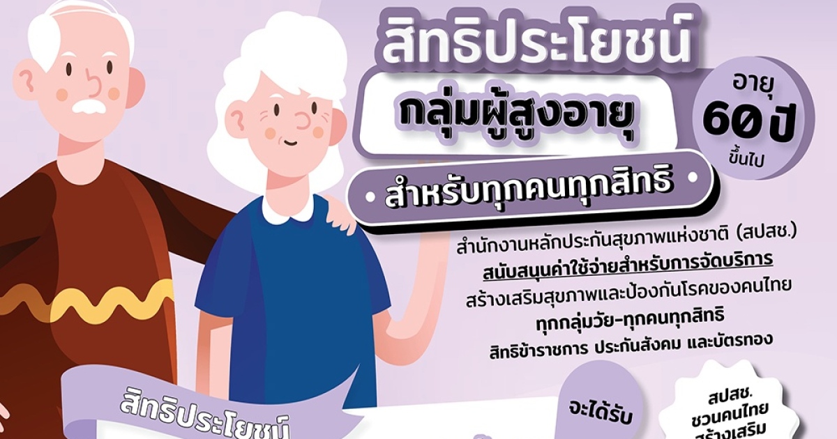 “13 เมษายน วันผู้สูงอายุแห่งชาติ” กองทุนบัตรทอง ห่วงใยดูแล “ผู้สูงวัย” จัดสิทธิประโยชน์ ครอบคลุมทั้งรักษาพยาบาล ส่งเสริมสุขภาพและป้องกันโรค ฟื้นฟูสมรรถภาพฯ พร้อมจับมือท้องถิ่นทั่วประเทศขับเคลื่อน กปท. เสริมสร้างสุขภาพดีๆ เพิ่มคุณภาพชีวิตให้ผู้สูงอายุ