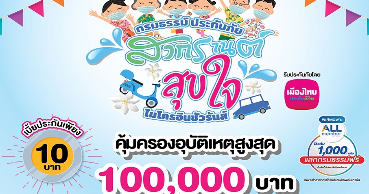 เมืองไทยประกันชีวิต และเคาน์เตอร์เซอร์วิส ส่งมอบ “กรมธรรม์ประกันภัยอุบัติเหตุสงกรานต์สุขใจ (ไมโครอินชัวรันส์)” เพิ่มความสุขและความห่วงใยช่วงเทศกาลสงกรานต์ 2565
