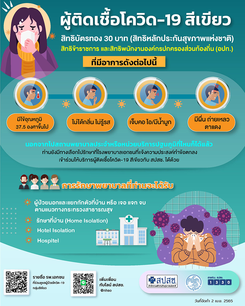 ทั้งนี้ สอบถามเพิ่มเติมการใช้สิทธิบัตรทอง สายด่วน สปสช. 1330 หรือช่องทางระบบออนไลน์ทั้งไลน์ สปสช. @nhso หรือคลิก https://lin.ee/zzn3pU6 และ Facebook : สำนักงานหลักประกันสุขภาพแห่งชาติ https://www.facebook.com/NHSO.Thailand