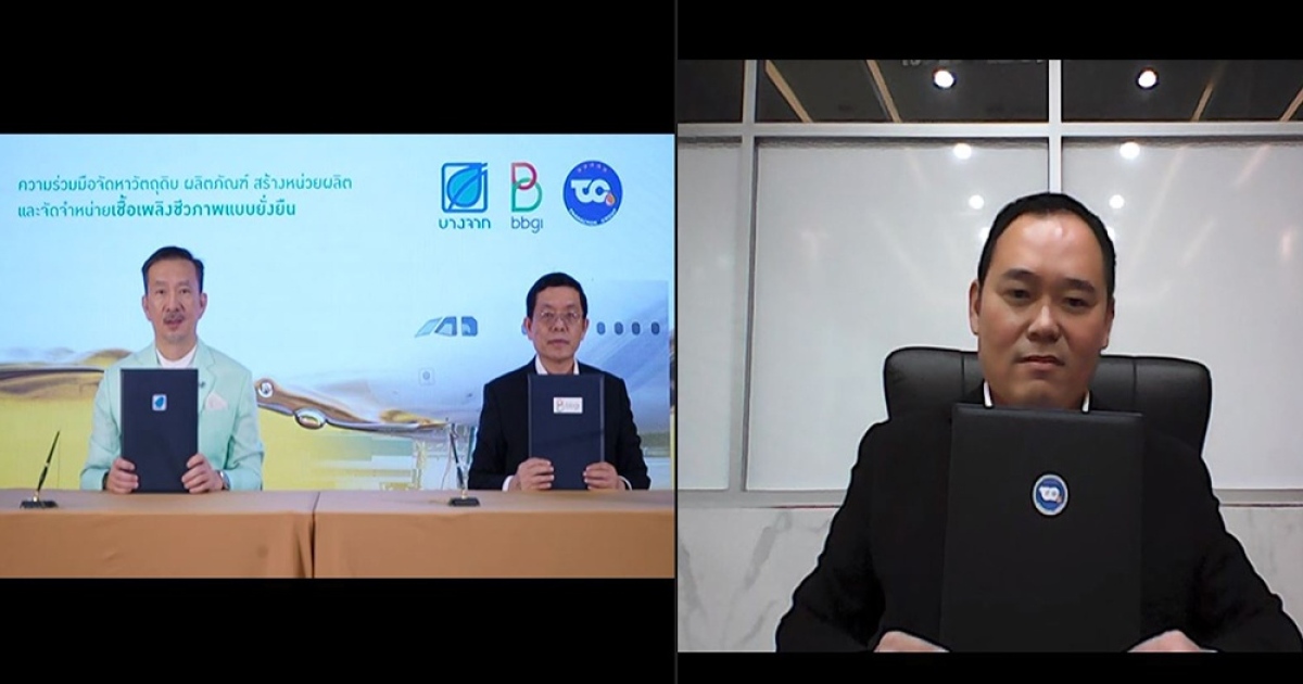 บีบีจีไอ จับมือ บางจากฯ ธนโชค ออย ไลท์ ผลิตน้ำมันเชื้อเพลิงอากาศยานยั่งยืนจากน้ำมันพืชใช้แล้ว เป็นรายแรกในประเทศไทย