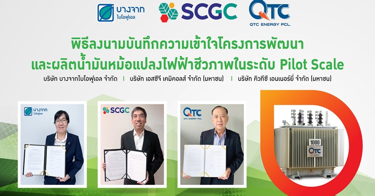 กลุ่ม BBGI จับมือ SCGC และ QTC เซ็นเอ็มโอยู พัฒนาและผลิตน้ำมันหม้อแปลงไฟฟ้าชีวภาพครั้งแรกของไทยหวังต่อยอดสู่เชิงพาณิชย์
