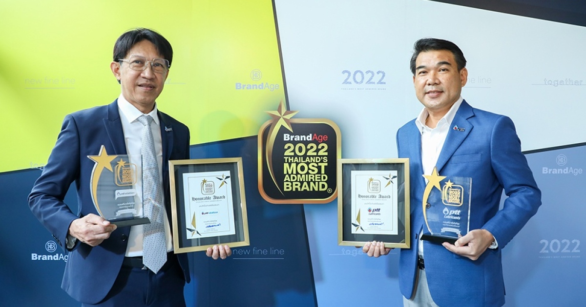 นายไพศาล อุดมกุลวณิชย์ รองกรรมการผู้จัดการใหญ่ธุรกิจหล่อลื่น(คนขวา) และ นายพีระวัฒน์ วชิโรภาสนันท์ ผู้จัดการฝ่ายการตลาดค้าปลีกน้ำมัน(คนซ้าย) บริษัท ปตท. น้ำมันและการค้าปลีก จำกัด (มหาชน) (โออาร์) ร่วมรับรางวัล Thailand’s Most Admired Brand & Why We Buy 2022 ในฐานะสถานีบริการน้ำมันและน้ำมันหล่อลื่นเครื่องยนต์ที่มีความน่าเชื่อถือที่สุดในใจผู้บริโภคเป็นอันดับหนึ่งติดต่อกันเป็นปีที่ 19 และ 13 ตามลำดับ อีกทั้ง พีทีที สเตชั่น ยังได้รับรางวัลพิเศษให้เป็น Market Leader Brand แบรนด์ที่มีส่วนแบ่งการตลาดสูงสุดในกลุ่มอุตสาหกรรม และ พีทีที ลูบริแคนท์ส ได้รับรางวัล Innovation Brand แบรนด์ที่มีนวัตกรรมหรือความคิดสร้างสรรค์นำเสนอออกสู่ตลาดอย่างสม่ำเสมออีกด้วย