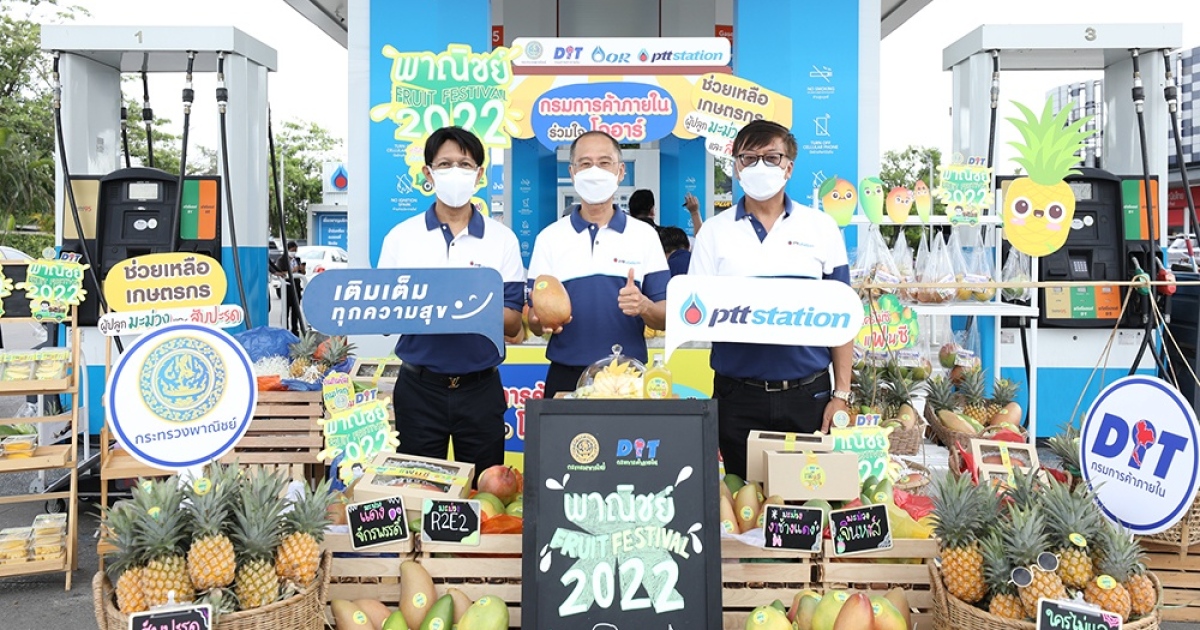 นายวัฒนศักย์ เสือเอี่ยม อธิบดีกรมการค้าภายใน กระทวงพาณิชย์ และนายบุญมา พนธนกรกุล รองกรรมการผู้จัดการใหญ่ธุรกิจค้าปลีกน้ำมัน บริษัท ปตท. น้ำมันและการค้าปลีก จำกัด (มหาชน) (โออาร์) ร่วมเปิดโครงการพื้นที่ปันสุข ที่ พีทีที สเตชั่น เพื่อเติมเต็มรอยยิ้มให้เกษตรกรไทย ที่ได้รับผลกระทบผลจากชะลอตัวของการรับซื้อผลผลิต ส่งผลต่อการระบายผลผลิตออกสู่ตลาดและเสถียรภาพทางด้านราคา โดย โออาร์ รับซื้อผลผลิตมะม่วงแฟนซี และสับปะรดภูแล จากเกษตกรในภาคเหนือ รวมกว่า 300,000 กิโลกรัม นำมาจัดกิจกรรมให้กับลูกค้าผู้เติมน้ำมันชนิดใดก็ได้ครบ 300 บาทขึ้นไปต่อใบเสร็จ รับฟรีมะม่วงแฟนซี หรือสับปะรดภูแล จำนวน 1 ถุง ณ พีทีที สเตชั่น ในพื้นที่จังหวัดกรุงเทพฯ นนทบุรี ปทุมธานี และสมุทรปราการ ที่ร่วมรายการ ระหว่างวันที่ 20-22 พฤษภาคม 2565 นี้