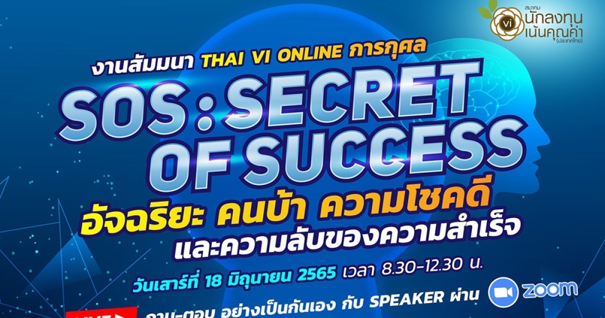 ThaiVI จัดสัมมนา “ SOS : SECRET OF SUCCESS อัจฉริยะ คนบ้า ความโชคดี และความลับของความสำเร็จ ” เพิ่มโอกาสความสำเร็จในหุ้น พร้อมกับมอบรายได้เป็นทุนให้เยาวชน“ร้อยพลังการศึกษา”
