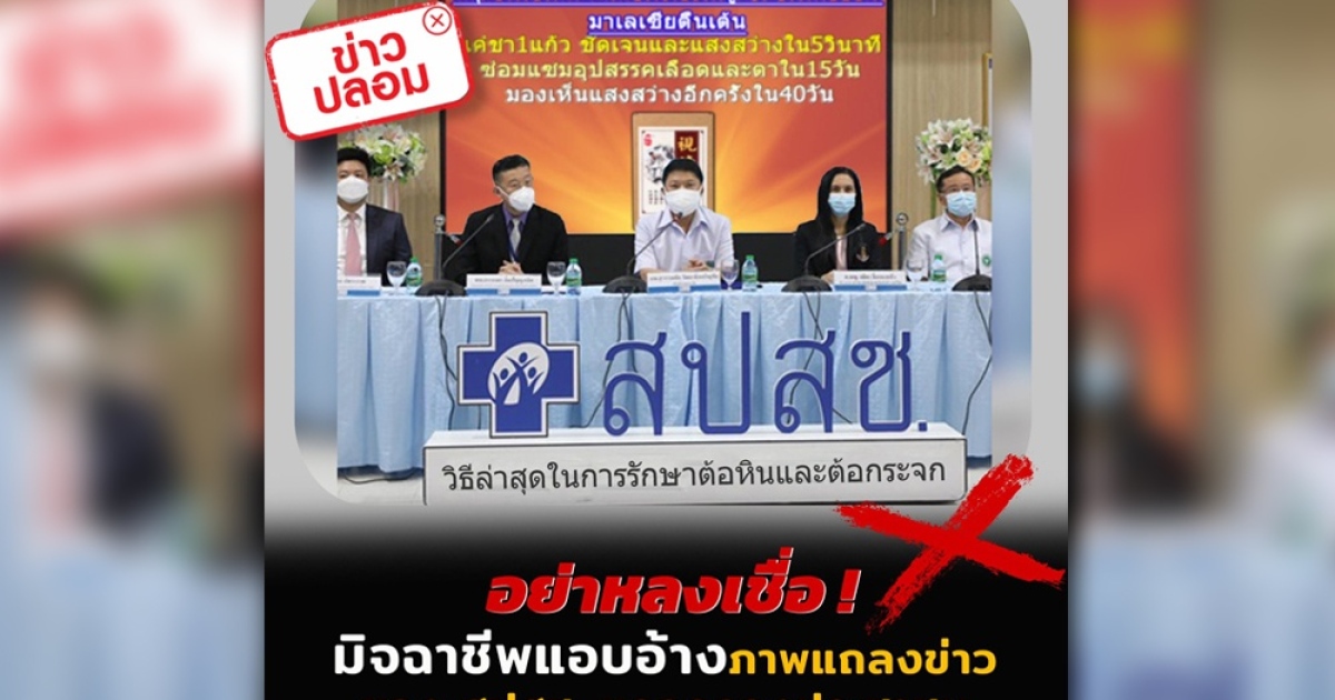 ทพ.อรรถพร ลิ้มปัญญาเลิศ รองเลขาธิการสำนักงานหลักประกันสุขภาพแห่งชาติ (สปสช.) ในฐานะโฆษก สปสช. กล่าวว่า ตามที่มีเพจ Facebook ใช้ชื่อ Caixas e mimos ซึ่งอวดอ้างขายสมุนไพรให้กับผู้ป่วยโรคตา โดยได้มีการนำภาพงานแถลงข่าว 'แว่นตาสำหรับเด็กสายตาผิดปกติ สิทธิประโยชน์บัตรทอง ของขวัญเพื่อเด็กไทยสายตาดี' ที่จัดโดย สปสช. เมื่อวันที่ 6 มกราคม 2565 ซึ่งมี นพ.สุวรรณชัย วัฒนายิ่งเจริญชัย อธิบดีกรมอนามัย นพ.ไชยสิทธิ์ เทพชาตรี รองประธานกรรมการพัฒนาระบบบริการสุขภาพ (service plan) สาขาตา กระทรวงสาธารณสุข และ ศ.พญ.วณิชา ชื่นกองแก้ว ประธานราชวิทยาลัยจักษุแพทย์แห่งประเทศไทย ร่วมแถลงข่าว มาตัดต่อภาพใส่ข้อความและนำมาเผยแพร่ต่อสาธารณะ เพื่อมุ่งหวังขายเพื่อทำให้ประชาชนหลงเชื่อและซื้อผลิตภัณฑ์
