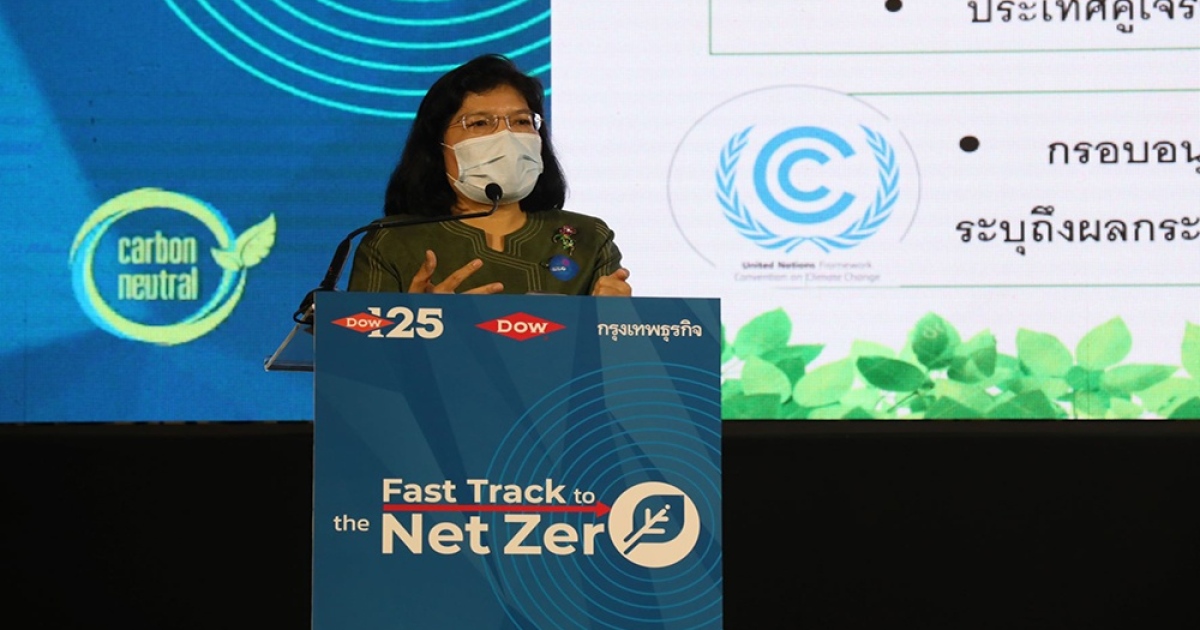 เนื่องในโอกาสที่กลุ่มบริษัท ดาว ประเทศไทย ซึ่งเป็นบริษัทวัสดุศาสตร์ที่เน้นนวัตกรรมและความยั่งยืน ดำเนินกิจการมาครบรอบ 125 ปี จึงได้จัดงานเสวนาในเรื่อง FAST TRACK to the NET ZERO โดยมีเป้าหมายสร้างความยั่งยืนด้วยนวัตกรรมที่ช่วยลดการปล่อยก๊าซเรือนกระจกให้น้อยลง ในงานนี้ได้เชิญ อรมน ทรัพย์ทวีธรรม อธิบดีกรมเจรจาการค้าระหว่างประเทศ กระทรวงพาณิชย์ ขึ้นกล่าวในหัวข้อ Surviving in the Low-carbon Export Markets หรือ ทางรอดสินค้าส่งออกไทยในตลาดคาร์บอนต่ำ ซึ่งขณะนี้เวทีการค้าระหว่างประเทศทุกเวทีได้ให้ความสำคัญกับเรื่อง Climate Change หรือการเปลี่ยนแปลงสภาพภูมิอากาศ