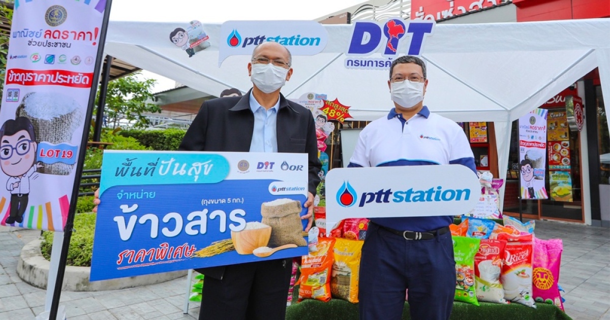 นายอุดม ศรีสมทรง รองอธิบดีกรมการค้าภายใน และนายถนัดพล ดุละลัมพะ ผู้จัดการส่วน กลยุทธ์การตลาด บริษัท ปตท. น้ำมันและการค้าปลีก จำกัด (มหาชน) (โออาร์) ร่วมเปิดโครงการพื้นที่ปันสุข ณ พีทีที สเตชั่น โดยจัดจำหน่ายข้าวสารถุงขนาด 5 กิโลกรัม ในราคาพิเศษ เพื่อเพิ่มช่องทางการจัดจำหน่ายให้เกษตรกร และช่วยลดค่าครองชีพให้ประชาชนที่มาใช้บริการ พีทีที สเตชั่น เริ่มเปิดจำหน่ายตั้งแต่วันนี้ – 31 กรกฎาคม 2565 ที่ พีทีที สเตชั่น ที่ร่วมโครงการ จำนวน 784 สาขาทั่วประเทศ ทั้งนี้ ราคาและวันที่เริ่มขายอาจแตกต่างกันในแต่ละพื้นที่ และโควตาการจัดสรรข้าวเป็นไปตามการจัดการของกรมการค้าภายใน ทั้งนี้ สามารถตรวจสอบรายชื่อ พีทีที สเตชั่น ที่ร่วมโครงการ หรือสอบถามรายละเอียดเพิ่มเติมได้ที่ โทร.1365 Contact Center หรือ www.pttor.com