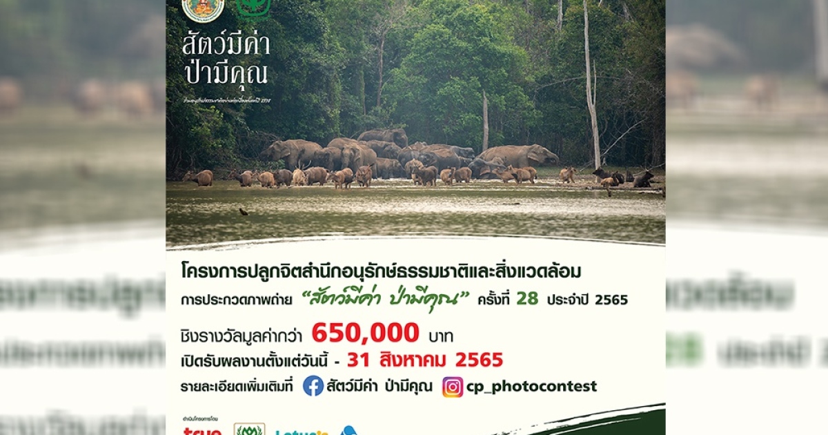 ด้วยความมุ่งมั่นปลูกจิตสำนึกอนุรักษ์ธรรมชาติและสิ่งแวดล้อม...กรมอุทยานแห่งชาติ สัตว์ป่า และพันธุ์พืช ร่วมกับ เครือเจริญโภคภัณฑ์ พร้อมด้วยบริษัทในเครือ ได้แก่ บริษัท ทรู คอร์ปอเรชั่น จำกัด (มหาชน) บริษัท เจริญโภคภัณฑ์อาหาร จำกัด (มหาชน) บริษัท เอก-ชัย ดีสทริบิวชั่น ซิสเทม จำกัด (โลตัส) และ บริษัท ซีพี บีแอนด์เอฟ (ไทยแลนด์) จำกัด สานต่อโครงการประกวดภาพถ่าย ‘สัตว์มีค่า ป่ามีคุณ’ ประจำปี 2565 ซึ่งจัดขึ้นต่อเนื่องปีที่ 28 เพื่อสร้างแรงบันดาลใจให้คนไทยเกิดความรัก ความหวงแหนสัตว์ป่าและป่าไม้ รักษาสมดุลธรรมชาติให้อยู่กับประเทศอย่างยั่งยืน ผ่านการประกวดภาพถ่าย ชิงถ้วยพระราชทานสมเด็จพระกนิษฐาธิราชเจ้า กรมสมเด็จพระเทพรัตนราชสุดาฯ สยามบรมราชกุมารี และถ้วยประทานสมเด็จพระเจ้าพี่นางเธอ เจ้าฟ้ากัลยาณิวัฒนา กรมหลวงนราธิวาสราชนครินทร์ พร้อมเงินรางวัลรวมกว่า 650,000 บาท ส่งผลงานเข้าประกวดได้ตั้งแต่วันนี้ – 31 สิงหาคม 2565