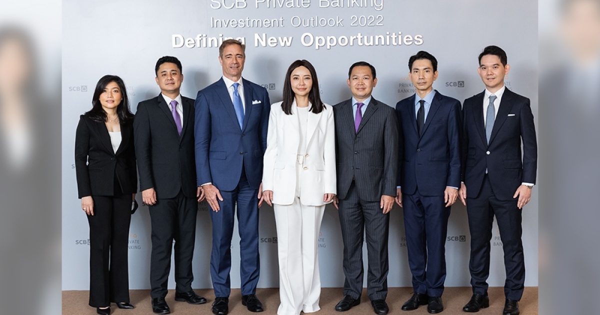 นางสาวลลิตภัทร ธรณวิกรัย (กลาง) รองผู้จัดการใหญ่ ผู้บริหารสายงาน Private Banking ธนาคารไทยพาณิชย์ เป็นประธานเปิดงานสัมมนา Defining New Opportunities : Investment Outlook 2022 โดยมี นายศรชัย สุเนต์ตา (ที่ 3 จากขวา) ผู้ช่วยผู้จัดการใหญ่ ผู้บริหารสายงาน Investment Office and Product ธนาคารไทยพาณิชย์ นายสุกิจ อุดมศิริกุล (ที่ 2 จากขวา ) กรรมการผู้จัดการสายงานวิจัย บริษัทหลักทรัพย์ ไทยพาณิชย์ จำกัด และมร. โดนัลด์ ไรซ์ (ที่ 3 จากซ้าย ) Head of Funds Specialist Asia ธนาคารจูเลียส แบร์ มาร่วมเปิดมุมมองและวิเคราะห์แนวโน้มทิศทางเศรษฐกิจโลกและไทย ในช่วงครึ่งหลังของปี 2022 พร้อมกลยุทธ์การลงทุนเพื่อฝ่าวิกฤติในช่วงที่มีความเสี่ยงต่อภาวะเศรษฐกิจถดถอย เพื่อเพิ่มความมั่งคั่งอย่างยั่งยืน ให้แก่ลูกค้าไพรเวทแบงก์กิ้งของธนาคารไทยพาณิชย์ ณ โรงแรมแมนดาริน โอเรียนเต็ล เมื่อเร็วๆนี้