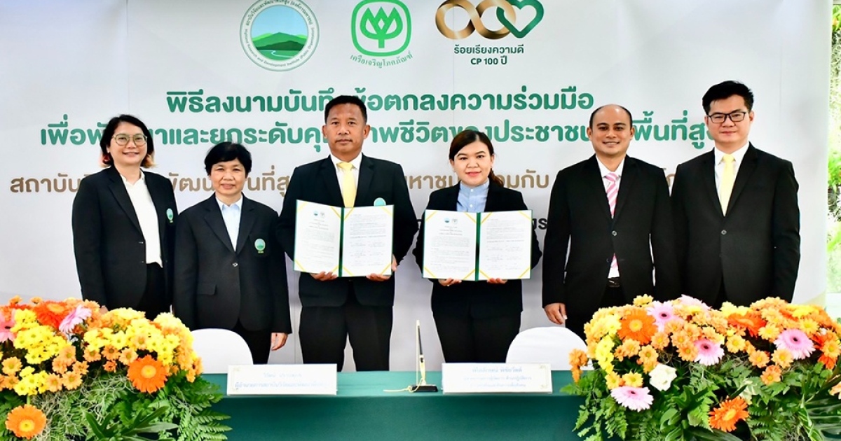 เมื่อเร็วๆ นี้ นางสาวพิไลลักษณ์ พิชัยวัตต์ ผู้ช่วยกรรมการผู้จัดการ ด้านปฏิบัติการความยั่งยืนและกิจการเพื่อสังคม หน่วยงานพัฒนาความยั่งยืนภาครัฐฯ เครือเจริญโภคภัณฑ์ พร้อมด้วย นายวิรัตน์ ปราบทุกข์ ผู้อำนวยการสถาบันวิจัยและพัฒนาพื้นที่สูง ร่วมลงนามบันทึกข้อตกลงความร่วมมือ (MOU) เพื่อพัฒนาและยกระดับคุณภาพชีวิตของประชาชนบนพื้นที่สูง ภายใต้เป้าหมายการพัฒนาที่ยั่งยืน (Sustainable Development Goals : SDGs) โมเดลเศรษฐกิจใหม่ BCG Economy และมุ่งไปสู่ความเป็นกลางทางคาร์บอน (Carbon Neutral) โดยได้รับเกียรติจาก นายชวลิต ชูขจร กรรมการผู้ทรงคุณวุฒิด้านการเกษตร และประธานอนุกรรมการวิจัยและพัฒนา สถาบันวิจัยและพัฒนาพื้นที่สูง กล่าวแสดงความยินดี พร้อมด้วย ดร.เพชรดา อยู่สุข รองผู้อำนวยการสถาบันวิจัยและพัฒนาพื้นที่สูง ด้านการพัฒนา นางอาณดา นิรันตรายกุล ผู้อำนวยการอุทยานหลวงราชพฤกษ์ นายอรรถวิทย์ ยุทธยศ ผู้จัดการทั่วไป ด้านปฏิบัติการความยั่งยืน และนายกฤตยรัฐ ปารมี ผู้จัดการมูลนิธิเจริญโภคภัณฑ์พัฒนาชีวิตชนบท ร่วมเป็นสักขีพยาน ตลอดจนผู้แทนกลุ่มธุรกิจในเครือซีพีได้เข้าร่วมด้วย ได้แก่ บริษัท เจียไต๋ จำกัด บริษัท ซีพีแรม จำกัด บริษัท สยามแม็คโคร จำกัด บริษัท เอก-ชัย ดิสทริบิวชั่น ซิสเทม จำกัด (โลตัส) และบริษัท ทรู คอร์ปอเรชั่น จำกัด มหาชน ณ อุทยานหลวงราชพฤกษ์ จ.เชียงใหม่