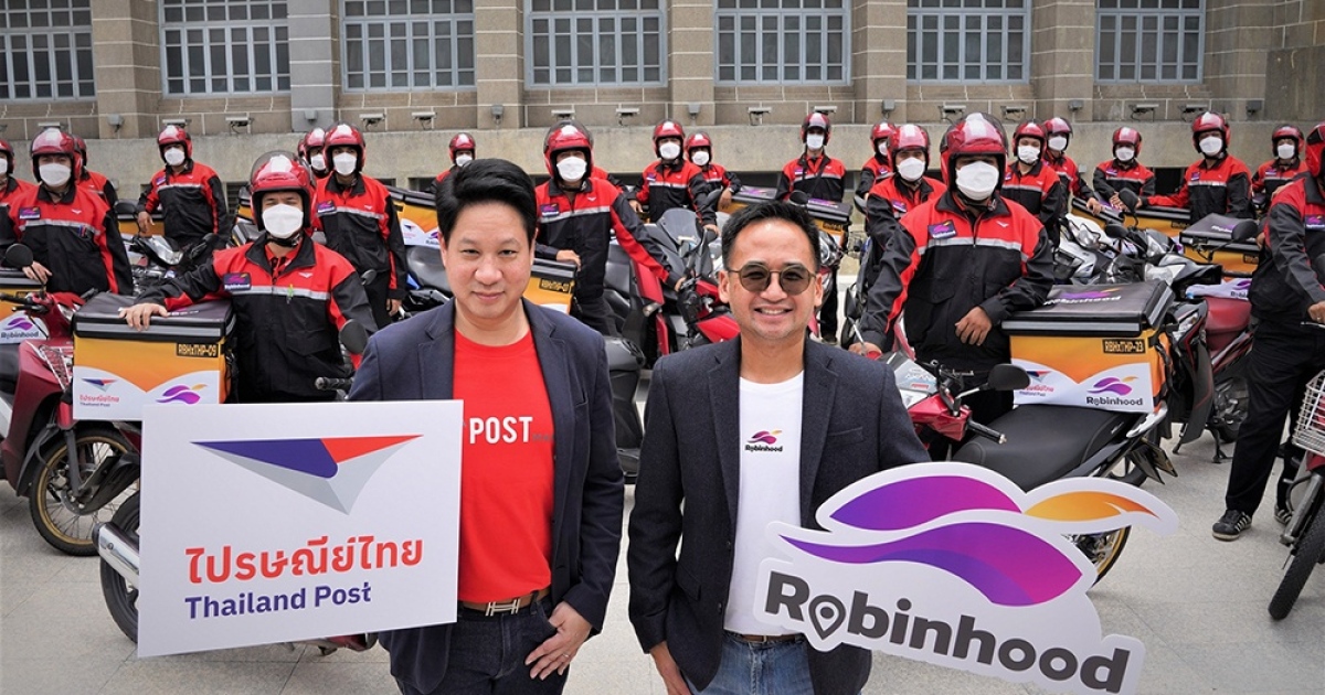 “เพื่อเป็นการอำนวยความสะดวกและเป็นอีกหนึ่งทางเลือกในการให้บริการส่งอาหารที่ดีที่สุดให้กับลูกค้า ไปรษณีย์ไทยจึงได้จับมือกับบริษัท เพอร์เพิล เวนเจอร์ส จำกัด ผู้ให้บริการส่งอาหารผ่านแพลตฟอร์ม Robinhood นำส่งอาหารจากร้านเล็กและร้านชื่อดังระดับตำนานในย่านบางรัก ยานนาวา และรองเมือง โดยบุรุษไปรษณีย์จะมาเสริมทีมช่วยส่งอาหารให้ลูกค้าที่อยู่ตามบ้านหรือออฟฟิศทำงานในชั่วโมงเร่งด่วน ซึ่งเป็นช่วงเวลาที่มีปริมาณการสั่งอาหารจำนวนมาก แต่ผู้ส่งอาหารมีจำนวนจำกัด ทั้งนี้ ไปรษณีย์ไทยพร้อมเพิ่มศักยภาพบุรุษไปรษณีย์ให้เป็นมากกว่าผู้ส่งของและช่วยเสริมให้แพลตฟอร์ม Robinhood มีความแข็งแกร่งขึ้นด้วยการส่งแบบมืออาชีพ ซึ่งการให้บริการครั้งนี้ถือเป็นการนำส่งความสุขและประสบการณ์ที่ดีในการรอรับประทานอาหารของลูกค้า ที่จะได้ทานอาหารร้านอร่อยแบบเร็วทันใจ รับประกันความเร็วโดยพี่ไปรฯ”