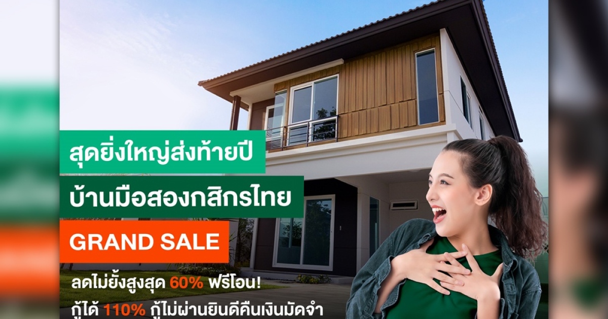 สุดยิ่งใหญ่ส่งท้ายปี บ้านมือสองกสิกรไทย GRAND SALE ลดไม่ยั้งสูงสุด 60% ฟรีโอน กู้ได้ 110% กู้ไม่ผ่านยินดีคืนเงินมัดจำ