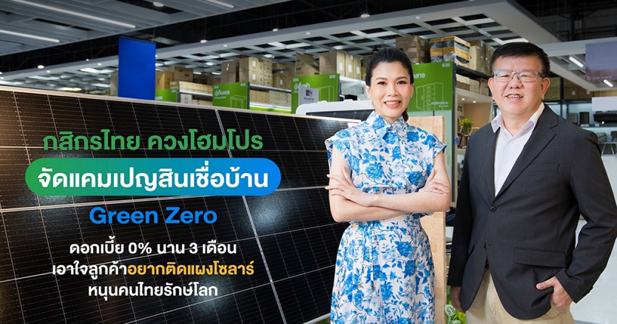 กสิกรไทย ควงโฮมโปร จัดแคมเปญสินเชื่อบ้าน Green Zero ดอกเบี้ย 0% นาน 3 เดือน เอาใจลูกค้าอยากติดแผงโซลาร์ หนุนคนไทยรักษ์โลก