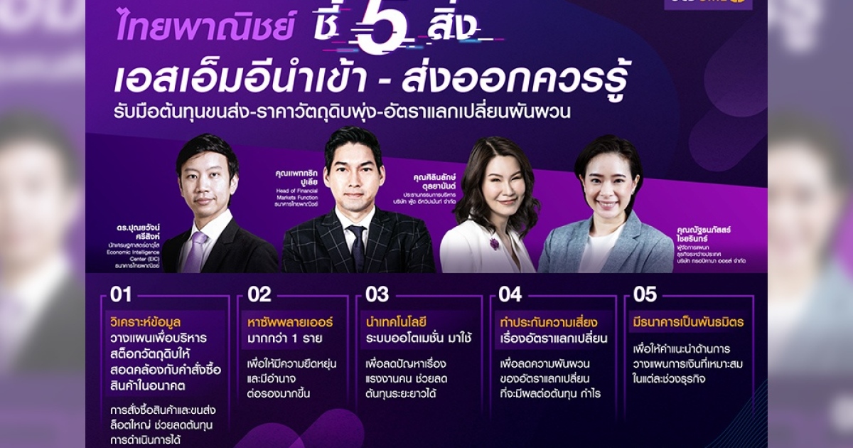 ไทยพาณิชย์ชี้ 5 สิ่งเอสเอ็มอีนำเข้า-ส่งออกควรรู้ รับมือต้นทุนขนส่ง-ราคาวัตถุดิบพุ่ง-อัตราแลกเปลี่ยนผันผวน