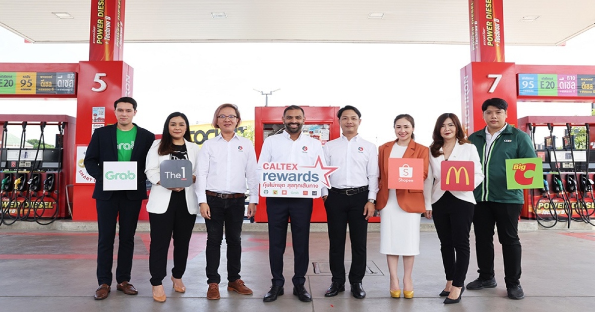 นายชาแชงค์ นานาวาติ ประธานกรรมการและผู้จัดการใหญ่ บริษัท เชฟรอน (ไทย) จำกัด ผู้ผลิตและจำหน่ายผลิตภัณฑ์คาลเท็กซ์ (ที่ 4 จากซ้าย) เปิดตัว คาลเท็กซ์ รีวอร์ด (Caltex Rewards) ครั้งแรกกับการนำระบบการสะสมคะแนนมาใช้ในสถานีบริการน้ำมัน ผ่านแอปพลิเคชัน CaltexGO แอปฯ ที่นอกจากจะสามารถชำระค่าบริการแบบสมาร์ท จ่ายไว ไร้สัมผัสแล้ว ยังสามารถสะสมคะแนนได้ภายในแอปฯ เดียว โดยลูกค้าสามารถนำคะแนนไปแลกรับส่วนลดค่าน้ำมัน หรือสิทธิพิเศษกับร้านค้าพันธมิตรที่ร่วมรายการอย่าง สตาร์บัคส์ บิ๊กซี ช้อปปี้ แกร็บ แมคโดนัลด์ หรือเลือกสะสมคะแนนกับ The 1 ได้อีกด้วย โดยมี คณะผู้บริหารฝ่ายพันธมิตรทางธุรกิจร่วมแสดงความยินดี ณ สถานีบริการน้ำมันคาลเท็กซ์ สาขาติวานนท์ (บจก. จุฑาสมิตร เซอร์วิส) ถนนติวานนท์ อำเภอปากเกร็ด จังหวัดนนทบุรี