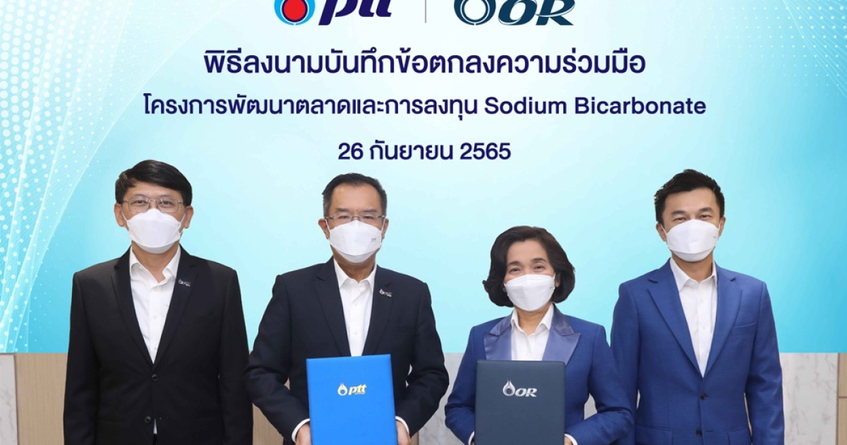 ปตท. จับมือ โออาร์ ศึกษาและพัฒนาตลาดโซเดียมไบคาร์บอเนต ใช้ประโยชน์จากก๊าซคาร์บอนไดออกไซด์ ลดการปล่อยคาร์บอนไดออกไซด์ รักษาสิ่งแวดล้อม