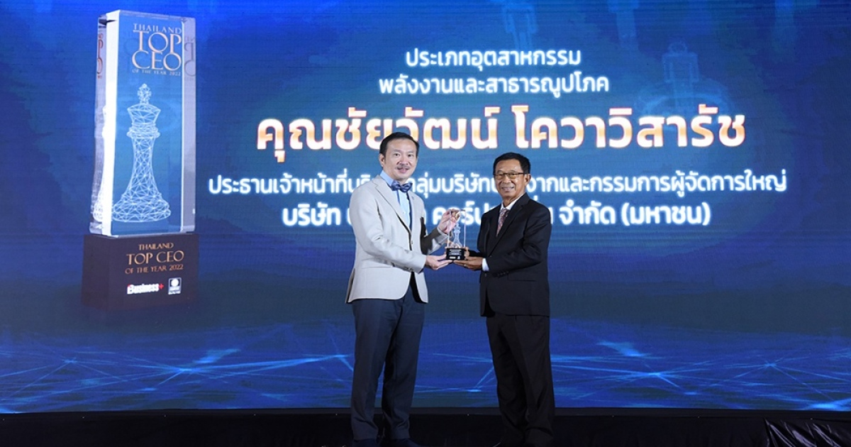 รางวัล “THAILAND TOP CEO OF THE YEAR 2022” เป็นรางวัลที่จัดขึ้นเพื่อคัดเลือกผู้บริหารระดับสูงสุดในองค์กรชั้นนำของประเทศจากแต่ละอุตสาหกรรมและรัฐวิสาหกิจ รวมถึงผู้บริหารหน่วยงานภาครัฐระดับอธิบดีและผู้ว่าราชการขึ้นไป อันเป็นเครื่องหมายแห่งความสำเร็จในการบริหารองค์กรของผู้บริหารระดับสูง ทั้งด้านวิสัยทัศน์ ความเป็นผู้นำและกลยุทธ์การบริหาร เพื่อสร้างความเข้มแข็งให้กับองค์กรโดยคำนึงถึงสิ่งแวดล้อม ชุมชน และสังคม ต่อยอดสู่การพัฒนาที่ยั่งยืนของประเทศ ผ่านกระบวนการคัดเลือกอันประกอบไปด้วยการคัดเลือกผู้เข้ารอบจากนิตยสาร Business+ โดยบริษัท เออาร์ไอพี จำกัด (มหาชน) ร่วมกับ คณะพาณิชยศาสตร์และการบัญชี มหาวิทยาลัยธรรมศาสตร์ ตามด้วยการโหวตจากประชาชนทั่วไป และการคัดกรองขั้นสุดท้ายจากคณะกรรมการผู้ทรงคุณวุฒิ โดยพิธีมอบรางวัลจัดขึ้นเมื่อเร็ว ๆ นี้ ณ โรงแรมแกรนด์ ไฮแอท เอราวัณ กรุงเทพฯ