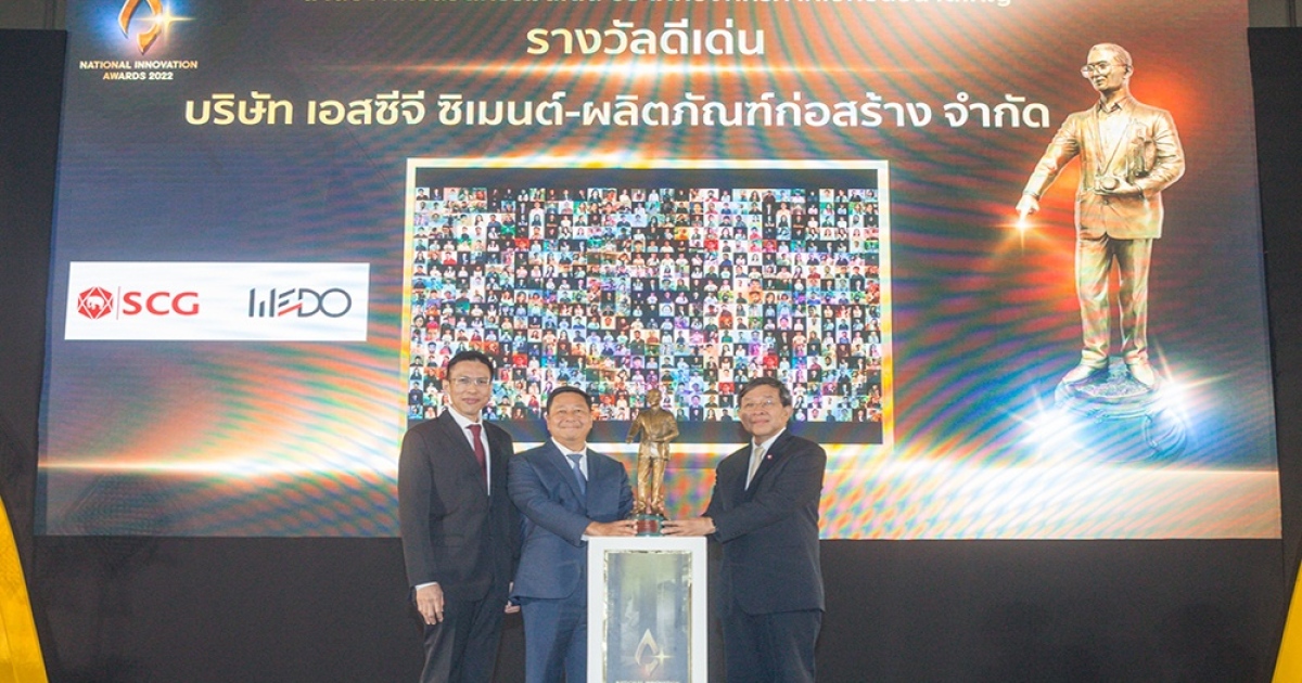 เอสซีจี โดยธุรกิจซีเมนต์และผลิตภัณฑ์ก่อสร้าง ได้รับรางวัลนวัตกรรมแห่งชาติประจำปี 2565 ด้านองค์กรนวัตกรรมดีเด่น ประเภทภาคองค์กรเอกชนขนาดใหญ่ ด้วยการก่อตั้ง Digital Office หรือ ที่เรียกว่า WEDO เพื่อนำเทคโนโลยีดิจิทัล (Digital Technology) มาประยุกต์ใช้กับการดำเนินงานต่าง ๆ ภายในธุรกิจ รวมถึงการพัฒนานวัตกรรมที่เรียกได้ว่า เป็น Born in Thailand (BiT) และตอบโจทย์ธุรกิจซีเมนต์และผลิตภัณฑ์ก่อสร้างในสามด้าน ได้แก่ การนำนวัตกรรมมาต่อยอดธุรกิจเดิม (Core Innovation) การเพิ่มความหลากหลายของธุรกิจด้วยสินค้า หรือ บริการรูปแบบใหม่ (Adjacent Innovation) และการสร้างธุรกิจใหม่ด้วยนวัตกรรม (New Innovation) เพื่อยกระดับชีวิตความเป็นอยู่ของคนไทยให้ดีขึ้นทั้งในด้าน Better Living, Better Health และ Better Future โดยมีคุณนิธิ ภัทรโชค (กลาง) กรรมการผู้จัดการใหญ่ ธุรกิจซีเมนต์และผลิตภัณฑ์ก่อสร้าง เอสซีจี และคุณอภิรัตน์ หวานชะเอม (ซ้าย) Chief Digital Officer ธุรกิจซีเมนต์และผลิตภัณฑ์ก่อสร้าง เอสซีจี รับรางวัลจาก รศ.นพ. สรนิต ศิลธรรม ประธานกรรมการนวัตกรรมแห่งชาติ (ขวา) ในงานวันนวัตกรรมแห่งชาติประจำปี 2565 จัดโดยสำนักงานนวัตกรรมแห่งชาติ (NIA)
