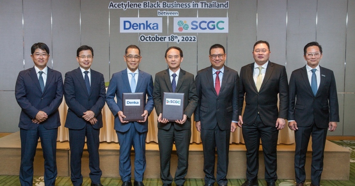 18 ตุลาคม 2565 - บริษัทเอสซีจี เคมิคอลส์ จำกัด (มหาชน) หรือ SCGC ได้ลงนามในสัญญาร่วมทุนกับบริษัท Denka Company Limited หรือ Denka ประเทศญี่ปุ่น เพื่อดำเนินธุรกิจผลิตและจำหน่ายอะเซทิลีนแบล็ก (Acetylene Black) ในจังหวัดระยอง คาดว่าจะมีกำลังการผลิตประมาณ 11,000 ตันต่อปี และโรงงานสามารถเริ่มกระบวนการผลิตได้ภายในต้นปี 2568 ทั้งนี้ อะเซทิลีนแบล็กของ Denka เป็นผลิตภัณฑ์คาร์บอนแบล็กชนิดพิเศษที่เป็นวัสดุนำไฟฟ้า มีคุณสมบัติที่มีความบริสุทธิ์และการนำไฟฟ้าสูง