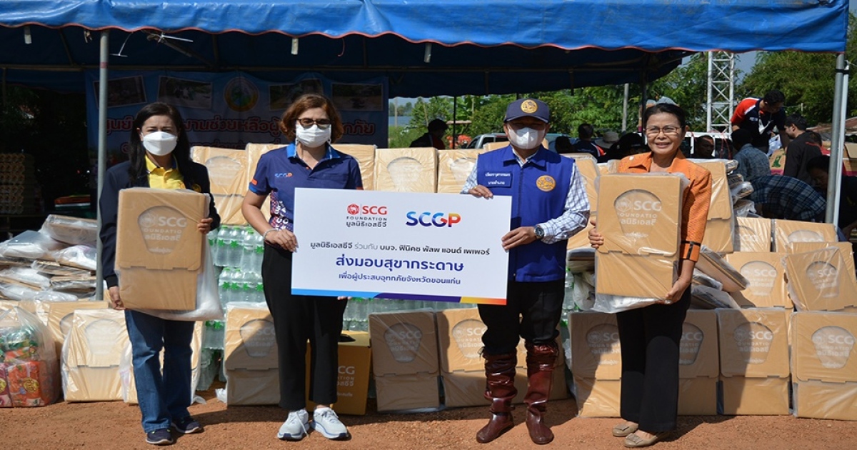 มูลนิธิเอสซีจี ร่วมกับ บริษัทฟินิคซ พัลพ แอนด์ เพเพอร์ จำกัด (มหาชน) ใน SCGP ส่งมอบสุขากระดาษจำนวน 500 ชุด พร้อมถุงยังชีพ และเครื่องอุปโภคบริโภค เพื่อช่วยเหลือผู้ประสบอุทกภัยในพื้นที่อำเภอเมือง อำเภอน้ำพอง และอำเภออุบลรัตน์ จังหวัดขอนแก่น ที่ได้รับผลกระทบจากพายุโนรู ทำให้ฝนตกหนักและปริมาณน้ำจากแม่น้ำชีสูงเข้าท่วมพื้นที่มานานกว่า 3 สัปดาห์ ซึ่งฟินิคซฯ ยังคงลงพื้นที่เพื่อให้ความช่วยเหลือและดูแลชุมชนอย่างต่อเนื่อง เพื่อส่งแรงกายและแรงใจให้กับผู้ประสบอุทกภัยในพื้นที่