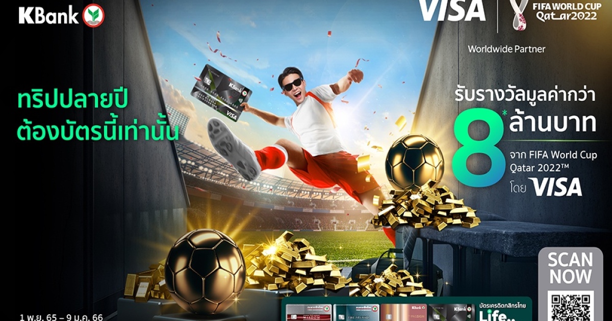 เคแบงก์จับมือวีซ่าจัดเต็มต้อนรับฟุตบอลโลก ใช้จ่ายผ่านบัตรเครดิตวีซ่ากสิกรไทย รับรางวัลรวมกว่า 8 ล้านบาท จาก FIFA World Cup Qatar 2022™ โดย VISA