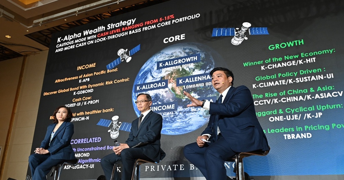 นายจิรวัฒน์ กล่าวในตอนท้ายว่า ธนาคารยังคงแนะนำกระจายการลงทุนในหลายๆ สินทรัพย์ผ่านกองทุนผสมเพื่อลดความเสี่ยงโดยรวมของพอร์ตลง โดยกองทุนผสมอย่าง K-ALLROAD Series ที่ได้เปิดตัวไปตั้งแต่ช่วงปลายปีที่ผ่านมา ซึ่งได้รับกระแสตอบรับที่ดีจากลูกค้า ด้วยสภาพตลาดการลงทุนในปัจจุบัน ธนาคารยังแนะนำให้ลูกค้ากระจายการลงทุนไปในสินทรัพย์ทางเลือกอื่นๆ เช่น กองทุนหุ้นนอกตลาด (Private Equity Fund) ซึ่งกองทุนที่ธนาคารแนะนำสามารถสร้างผลตอบแทนตั้งแต่จัดตั้งกองทุนที่ดีให้กับพอร์ตลูกค้าได้สูงถึง 47.83%* และ 25.67%* นอกจากนี้ ธนาคารยังได้แนะนำกองทุนด้านความยั่งยืน อย่าง K-CLIMATE โดยผลการดำเนินงานตั้งแต่จัดตั้งกองทุน Master funds ให้ผลตอบแทนที่ +16.15% ต่อปี**