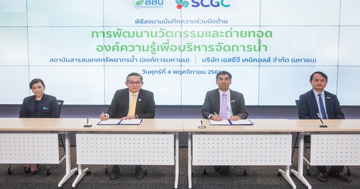 บริษัทเอสซีจี เคมิคอลส์ จำกัด (มหาชน) หรือ SCGC ร่วมกับสถาบันสารสนเทศทรัพยากรน้ำ (องค์การมหาชน) หรือ สสน. ลงนามความร่วมมือ (MOU) ด้านการพัฒนานวัตกรรมและถ่ายทอดองค์ความรู้เพื่อการบริหารจัดการน้ำ ตามแนวทางการพัฒนาอย่างยั่งยืน และ ESG โดยแลกเปลี่ยนองค์ความรู้ด้านการวิจัยและพัฒนาเทคโนโลยี นวัตกรรม และระบบสารสนเทศ เพื่อบริหารจัดการวิกฤตน้ำท่วมและน้ำแล้ง รวมถึงการบริหารจัดการน้ำชุมชน ให้เกิดการใช้งานอย่างเหมาะสมต่อสภาพพื้นที่และสถานการณ์น้ำของประเทศไทย เป็นการสร้างสรรค์นวัตกรรมเพื่อสังคม (Innovation for Society) ให้ชุมชนเข้าถึงนวัตกรรมหรือเทคโนโลยีได้อย่างมีประสิทธิภาพสูงสุด