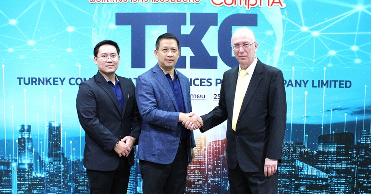 เมื่อวันที่ 10 พฤศจิกายน นายสยาม เตียวตรานนท์ กรรมการผู้จัดการบริษัท เทิร์นคีย์ คอมมูนิเคชั่นเซอร์วิส จำกัด (มหาชน) หรือทีเคซี และนายปีเตอร์ แชลค์วิชค์ รองประธานสมาคมอุตสาหกรรมเทคโนโลยีคอมพิวเตอร์ (คอมพ์เทีย) ภาคพื้นเอเชียแปซิฟิค (Peter Schalkwijkc) แถลงถึงความร่วมมือระหว่างทีเคซี และคอมพ์เทีย ในการมอบหมายให้ทีเคซี เป็นตัวแทนสนับสนุนการขาย การขยายตลาดของบริการ และผลิตภัณฑ์คอมพ์เทียเพื่อฝึกอบรมบุคคลากร และออกใบรับรองมาตรฐานสากลด้านเทคโนโลยีสารสนเทศ และความมั่นคงปลอดภัยทางไซเบอร์ในประเทศไทย