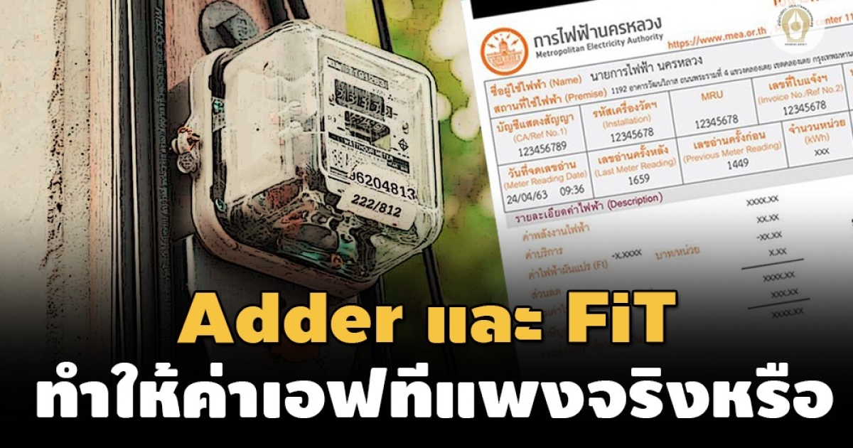 ทำความเข้าใจอัตราค่าไฟฟ้าส่วนเพิ่มโดยบวกเพิ่มจากอัตราค่าไฟฟ้าปกติเป็นระยะเวลา 7 หรือ 10 ปี(Adder) และ การผลิตไฟฟ้าจากพลังงานหมุนเวียนแต่ละประเภท(Fit)ที่มีผลต่อค่าไฟฟ้าในปัจจุบัน