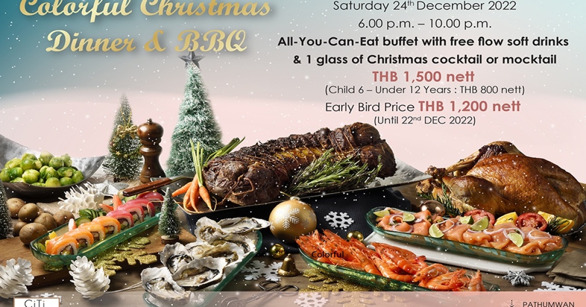 เฉลิมฉลองเทศกาลแห่งความสุขกับคนที่คุณรักที่ห้องอาหารซิตี้ บิสโทร โรงแรมปทุมวัน ปริ๊นเซส กับโปรโมชั่น Colorful Christmas Dinner & BBQ ในคืนวันเสาร์ที่ 24 ธันวาคม 2565