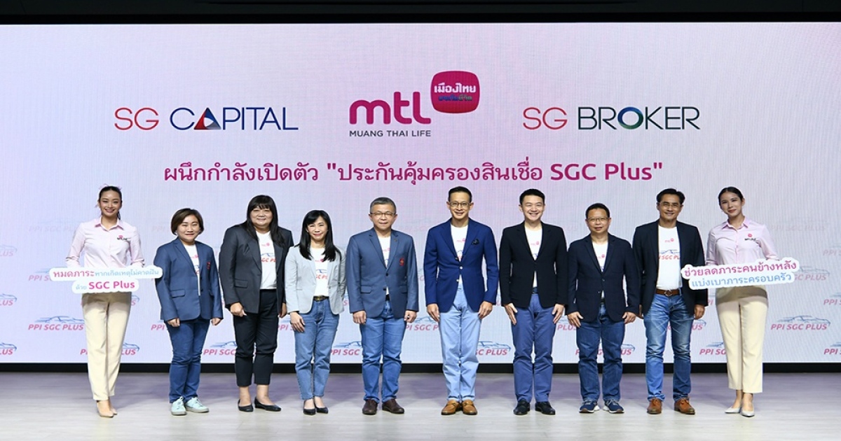 บริษัท เมืองไทยประกันชีวิต จำกัด (มหาชน) ร่วมกับ บริษัท เอสจี แคปปิตอล จำกัด (มหาชน) หรือ SGC เปิดตัวผลิตภัณฑ์ประกันชีวิตคุ้มครองสินเชื่อ “SGC Plus” เอาใจลูกค้าสินเชื่อรถทำเงิน เพิ่มทางเลือกในการสร้างความอุ่นใจ หมดความกังวัลหากเกิดเหตุไม่คาดฝัน ตอบโจทย์ครบทั้งความคุ้มครองชีวิตและอุบัติเหตุ