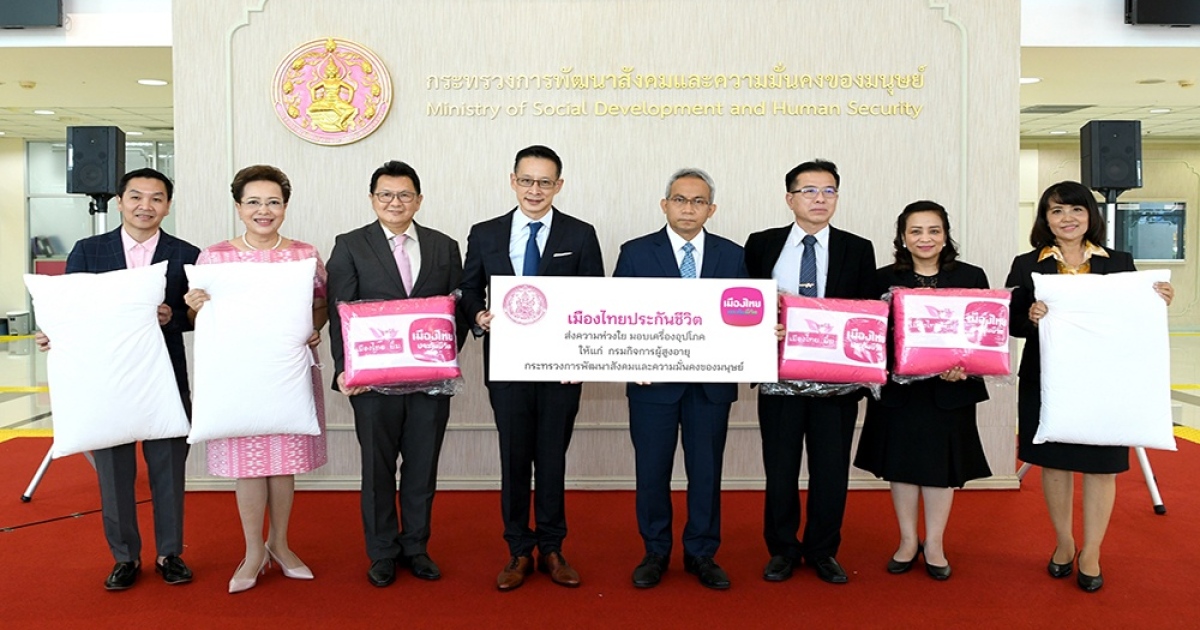 นายสาระ ล่ำซำ ประธานเจ้าหน้าที่บริหาร พร้อมด้วย นายปราโมทย์ ศักดิ์กำจร รองกรรมการผู้จัดการอาวุโส นางพิตราภรณ์ บุณยรัตพันธุ์ รองกรรมการผู้จัดการอาวุโส และนายรัชดา พุ่มสุวรรณ รองกรรมการผู้จัดการ บริษัท เมืองไทยประกันชีวิต จำกัด (มหาชน) ร่วมมอบเครื่องอุปโภคให้แก่กระทรวงการพัฒนาสังคมและความมั่นคงของมนุษย์ โดยมีผ้าห่มจำนวน 400 ผืน หมอนจำนวน 362 ใบ รวมมูลค่า 168,870 บาท เพื่อนำไปมอบให้แก่ผู้สูงอายุที่ขาดแคลน และกลุ่มประชาชนเปราะบางทางสังคม ให้มีคุณภาพชีวิตที่ดีขึ้น โดยมี นายอนุกูล ปีดแก้ว ปลัดกระทรวงการพัฒนาสังคมและความมั่นคงของมนุษย์ นายธนสุนทร สว่างสาลี รองปลัดกระทรวงการพัฒนาสังคมและความมั่นคงของมนุษย์ นางจตุพร โรจนพานิช อธิบดีกรมกิจการเด็กและเยาวชน และนางสาวชวนชม จันทะวงษ์ รองอธิบดีกรมกิจการผู้สูงอายุ เป็นผู้แทนรับมอบ ณ กระทรวงการพัฒนาสังคมและความมั่นคงของมนุษย์