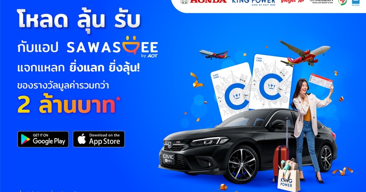 สายเที่ยวอย่าช้า! เพียงดาวน์โหลดแอป “SAWASDEE by AOT” ลุ้นรับรางวัลใหญ่ทันที ชิงรถยนต์ Honda Civic และรางวัลมากมายรวมกว่า 2 ล้านบาท* วันนี้-28 ก.พ. 66