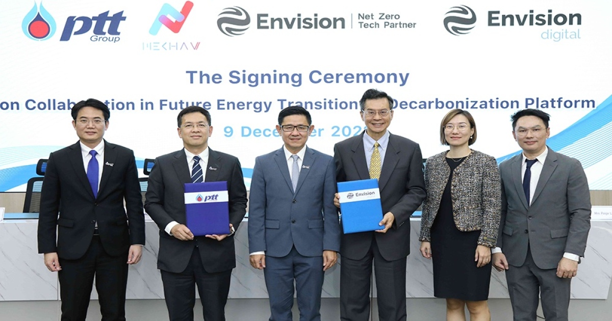 เมื่อวันที่ 9 ธันวาคม 2565 บริษัท ปตท. จำกัด (มหาชน) และ ENVISION DIGITAL INTERNATIONAL PTE. LTD. บริษัทชั้นนำด้านการพัฒนาซอฟต์แวร์เพื่อลดคาร์บอน ภายใต้กลุ่มบริษัท Envision ร่วมลงนามบันทึกความเข้าใจ (MOU) Collaboration in Future Energy Transition by Decarbonization Platform ศึกษาและทดลองการใช้งานแพลตฟอร์มบริหารจัดการพลังงานอัจฉริยะ ภายในพื้นที่ของกลุ่ม ปตท. เพื่อบริหารและลดการปล่อยก๊าซเรือนกระจก ขับเคลื่อนเป้าหมายการปล่อยก๊าซเรือนกระจกสุทธิเป็นศูนย์ (Net Zero Emissions) ภายในปี 2050 โดยมี ดร. บุรณิน รัตนสมบัติ ประธานเจ้าหน้าที่ปฏิบัติการกลุ่มธุรกิจใหม่และโครงสร้างพื้นฐาน คุณเชิดชัย บุญชูช่วย รองกรรมการผู้จัดการใหญ่นวัตกรรมและธุรกิจใหม่ บริษัท ปตท. จำกัด (มหาชน) และ Mr. Ko Kheng Hwa ประธานกรรมการ Envision Digital ร่วมในพิธีลงนาม