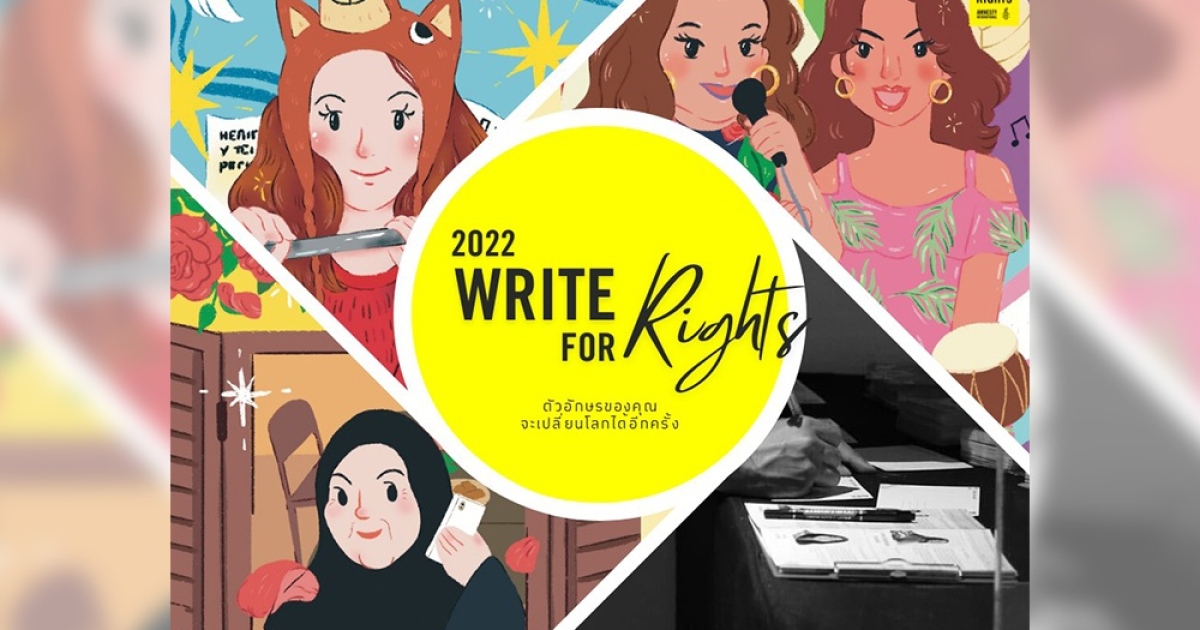 กลับมาอีกครั้งกับแคมเปญ ‘Write for Rights’ หรือ ‘เขียน เปลี่ยน โลก’ กิจกรรมรณรงค์ด้านสิทธิมนุษยชนประจำปีที่ใหญ่สุดในโลก ซึ่งผู้คนนับล้านทั่วโลกมารวมตัวกันเพื่อปกป้องสิทธิของผู้อื่น โดยกิจกรรมนี้ได้จัดต่อเนื่องมาเป็นปีที่ 21 แล้ว