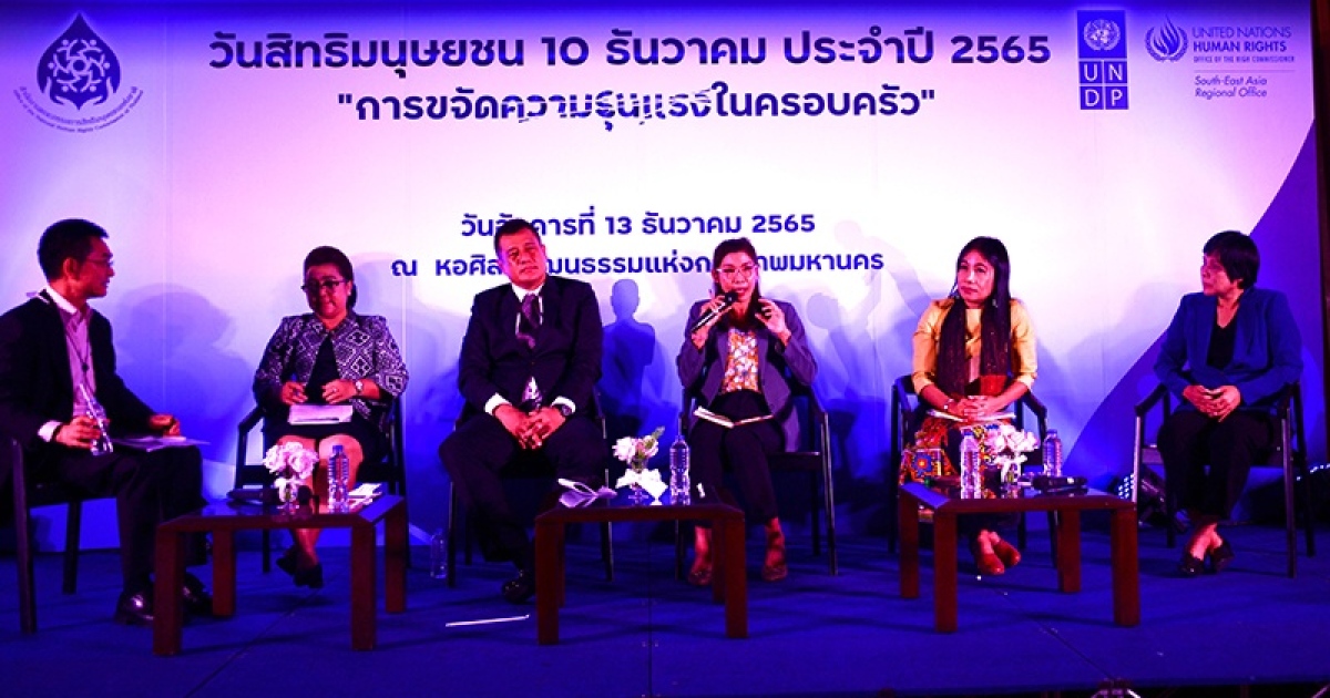 เมื่อวันที่ 13 ธันวาคม 2565 คณะกรรมการสิทธิมนุษยชนแห่งชาติ (กสม.) ร่วมกับสำนักงานข้าหลวงใหญ่เพื่อสิทธิมนุษยชนแห่งสหประชาชาติ (OHCHR) ประจำภูมิภาคเอเชียตะวันออกเฉียงใต้ และโครงการพัฒนาแห่งสหประชาชาติ (UNDP) ประเทศไทย และภาคีเครือข่าย จัดงานวันสิทธิมนุษยชน 10 ธันวาคม ประจำปี 2565 ภายใต้แนวคิด “การขจัดความรุนแรงในครอบครัว” ณ หอศิลปวัฒนธรรมแห่งกรุงเทพมหานคร