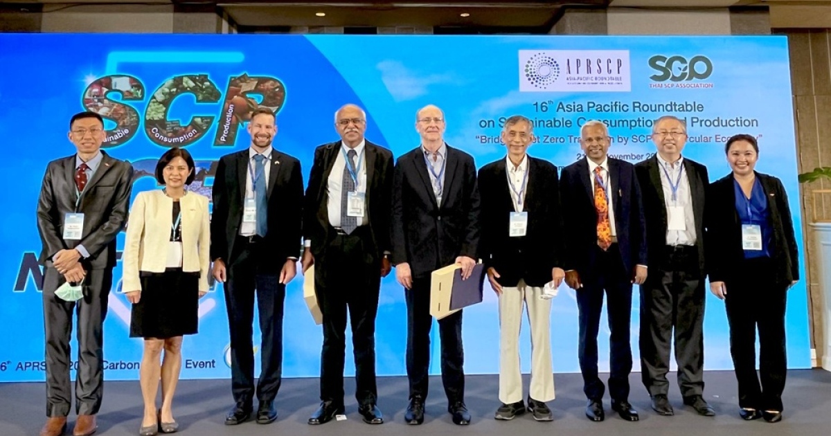 เมื่อเร็วๆ นี้ สมาคมส่งเสริมการผลิตและการบริโภคที่ยั่งยืน (ประเทศไทย) และ The Asia Pacific Roundtable for Sustainable Consumption and Production (APRSCP) ได้จัดงานประชุมการส่งเสริมการผลิตและการบริโภคที่ยั่งยืนแห่งเอเซียแปซิฟิกครั้งที่ 16 เรื่อง Bridging Net Zero Transition by SCP and Circular Economy ณ โรงแรมปทุมวันปริ๊นเซส กรุงเทพมหานคร เพื่อส่งเสริมความร่วมมือและแลกเปลี่ยนองค์ความรู้ ประสบการณ์ ของภาคต่างๆ ทั้งภาครัฐ ภาคเอกชน องค์กรระหว่างประเทศที่เกี่ยวข้องกับการดำเนินงานด้านการผลิตและการบริโภคที่ยั่งยืนในภูมิภาคเอเชียแปซิฟิก ซึ่งมีความสอดคล้องกับเป้าหมายการปล่อยก๊าซเรือนกระจกเป็นศูนย์ ในการนี้ได้รับเกียรติจาก มร. เอ็ดวิน ซี. แซเกอตัน จูเนียร์, ที่ปรึกษาฝ่ายเศรษฐกิจ, สถานฑูตอเมริกา ขึ้นกล่าวปาถกฐาในหัวข้อ “Leveraging the Power of the Private Sector: How the U.S. is Engaging Companies to Fight Climate Change” รวมทั้งภาคเอกชนหลายหน่วยงานร่วมแชร์ประสบการณ์เกี่ยวกับบทบาทภาคเอกชนและภาครัฐในการจัดการขยะพลาสติกและการจัดการเพื่อการปล่อยคาร์บอนเป็นศูนย์ในงานนี้