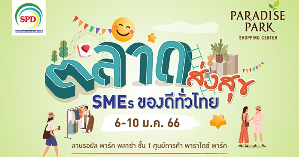 โดยงาน “ตลาดส่งสุข SMEs ของดีทั่วไทย” มีระหว่างวันศุกร์ที่ 6 – วันอังคารที่ 10 มกราคม 2566 ณ บริเวณชั้น 1 ลานรอยัลพาร์ค พลาซ่า ศูนย์การค้าพาราไดซ์ พาร์ค