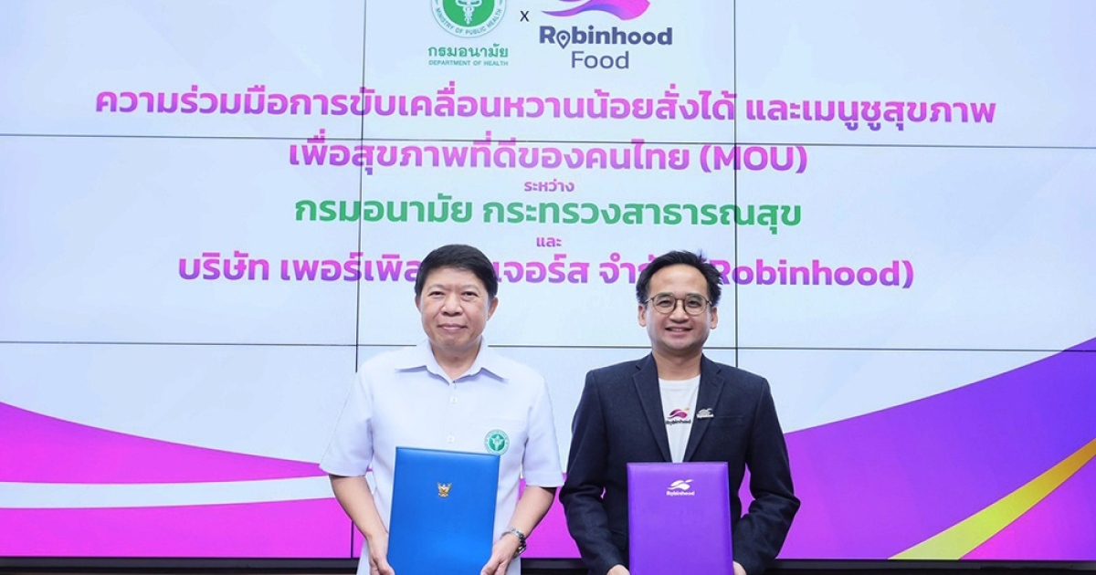 กรมอนามัย กระทรวงสาธารณสุข ร่วมกับ บริษัท เพอร์เพิล เวนเจอร์ส จำกัด หรือผู้พัฒนาและให้บริการแอปพลิเคชัน 'Robinhood' รณรงค์ให้คนไทยสุขภาพดี พร้อมรับนโยบายหวานน้อยสั่งได้ และเมนูชูสุขภาพ ให้ประชาชนเลือกและสั่งเครื่องดื่มหวานน้อย และเมนูชูสุขภาพ ลดหวาน มัน เค็ม ผ่านแอปพลิเคชัน 'Robinhood'