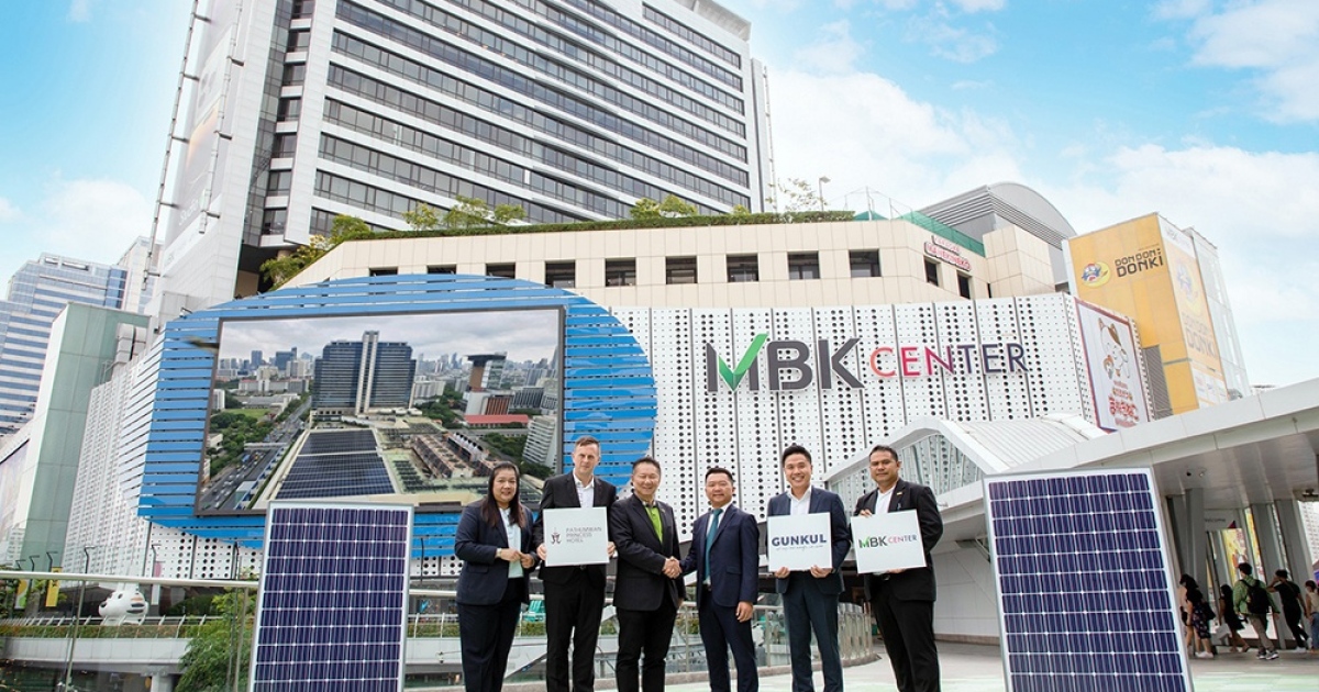เอ็ม บี เค เดินหน้าลงทุนด้านอาคารประหยัดพลังงานสนับสนุนการใช้พลังงานสะอาดเพื่อการพัฒนาที่ยั่งยืนอย่างต่อเนื่อง ล่าสุด ศูนย์การค้าเอ็ม บี เค เซ็นเตอร์ โดย นายสมพล ตรีภพนารถ ประธานเจ้าหน้าที่บริหารธุรกิจศูนย์การค้า บริษัท เอ็ม บี เค จำกัด (มหาชน)(ที่ 3 จากซ้าย) และ โรงแรมปทุมวัน ปริ๊นเซส โดย มร.เปอร์ อิริค ลันช์ ผู้จัดการทั่วไป บริษัท เอ็ม บี เค การธุรกิจ จำกัด (ที่ 2 จากซ้าย) จับมือ GUNKUL ผู้นำด้านพลังงานทดแทน โดย ดร.พงษ์สกร ดำเนิน ประธานเจ้าหน้าที่ปฏิบัติการ สายงานธุรกิจพลังงานและกัญชงกัญชา บริษัท กันกุล เอ็นจิเนียริ่ง จำกัด (มหาชน) (ที่4 จากซ้าย) นายเจนพล งามอรุณโชติ ผู้อำนวยการอาวุโส สายงานขายและการตลาด Energy Solution and Lighting, GRoof และ Innovation (ที่ 5 จากซ้าย) ติดตั้งแผงโซล่าเซลล์ประหยัดพลังงาน (Solar PV Rooftop) เมื่อเร็ว ๆ นี้