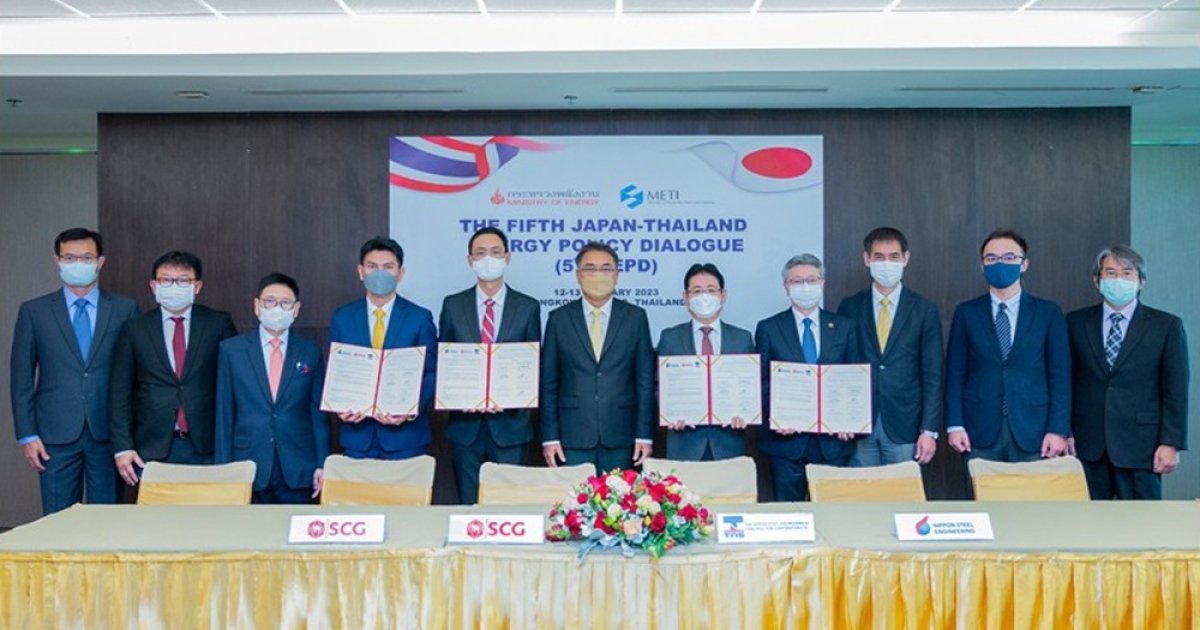 นายสุรชัย นิ่มละออ Chief Innovation & Technology Officer บริษัท เอสซีจี ซิเมนต์ จำกัด และนายวิเชษฐ์ ชูเชื้อ Chief Operating Officer บริษัท ปูนซิเมนต์ไทย (แก่งคอย) จำกัด ลงนามบันทึกข้อตกลง 'การศึกษาความเป็นไปได้ในการดักจับคาร์บอนและการใช้ประโยชน์จากก๊าซเผาไหม้ ที่ปล่อยจากกระบวนการผลิตปูนซีเมนต์ในประเทศไทยและประเทศในภูมิภาคเอเชียตะวันออกเฉียงใต้' กับนายTakashi Suzuki (ทาคาชิ ซูซูกิ) BoD Environment Energy Sector - Nippon Steel Engineering Co., Ltd. (NSE) และ นาย Masaya Watanabe (มาซายะ วาตานาเบะ) CEO - Thai Nippon Steel Engineering and Construction Corporation, Ltd. (TNS) โดยความร่วมมือดังกล่าวได้รับทุนสนับสนุนบางส่วนจาก New Energy and Industrial Technology Development Organization (NEDO) ของรัฐบาลญี่ปุ่น สำหรับความร่วมมือในครั้งนี้ นำโดย นายชนะ ภูมี Vice President – Cement and Green Solution Business ธุรกิจซีเมนต์และผลิตภัณฑ์ก่อสร้าง เอสซีจี และนาย Yukito Ishiwa (ยูกิโตะ อิชิวะ) Representative Director and President – NSE Group เพื่อบรรลุเป้าหมาย Net Zero Cement & Concrete ในปี 2050