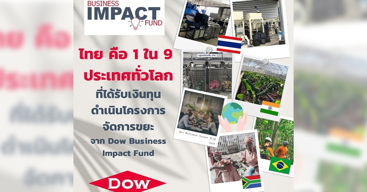 กองทุน Dow Business Impact Fund ก่อตั้งขึ้นในปี พ.ศ. 2559 ด้วยความเชื่อในพลังของความร่วมมือในการแก้ไขปัญหารวมทั้งสร้างสรรค์สังคมและสิ่งแวดล้อมที่ดียิ่งขึ้น จากการมีส่วนร่วมขององค์กรไม่แสวงหาผลกำไร ผู้ประกอบการหน้าใหม่ ลูกค้า คู่ค้า และพนักงานของ Dow โดยผู้บริหารและคณะกรรมการของ Dow จากทั่วโลกจะพิจารณาคัดเลือกโครงการที่มีศักยภาพในการแก้ไขปัญหาสังคมและสิ่งแวดล้อม สร้างความร่วมมือกับพันธมิตรในภาคส่วนต่าง ๆ และสร้างโอกาสทางธุรกิจใหม่ ๆ ได้