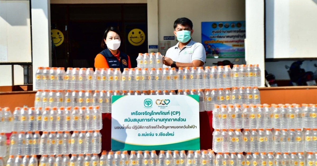 เครือซีพี ห่วงใยสถานการณ์ไฟป่า อ.แม่แจ่ม จ.เชียงใหม่ มอบน้ำดื่มสนับสนุนภารกิจเจ้าหน้าที่ในการแก้ไขปัญหาหมอกควันไฟป่า พร้อมสร้างขวัญและกำลังใจอย่างต่อเนื่อง