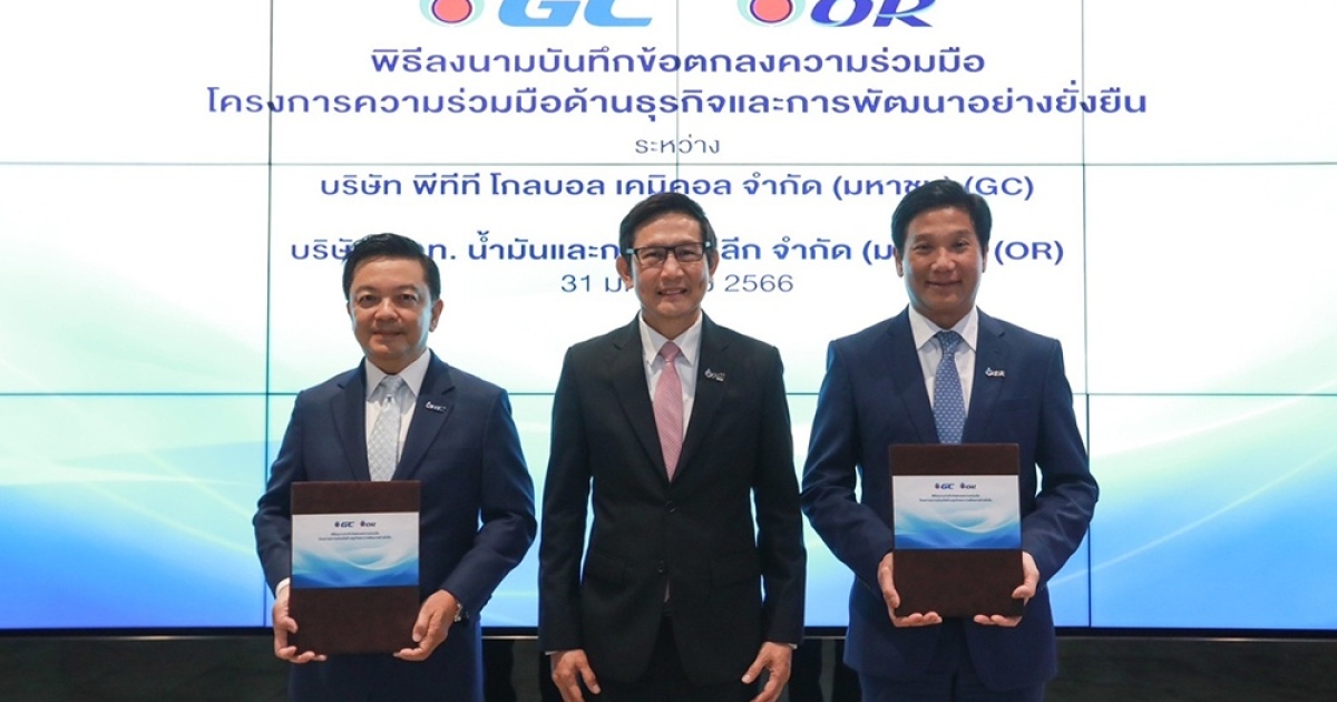บริษัท พีทีที โกลบอล เคมิคอล จำกัด (มหาชน) หรือ GC และ บริษัท ปตท. น้ำมันและการค้าปลีก จำกัด (มหาชน) หรือ OR ผนึกกำลังสร้างความร่วมมือทางธุรกิจและการพัฒนาอย่างยั่งยืน