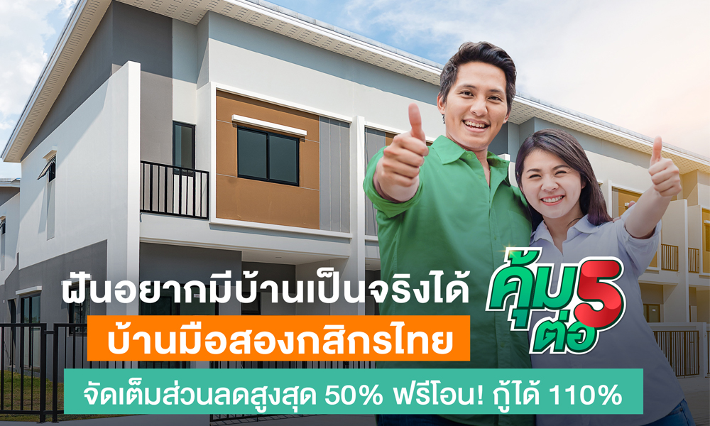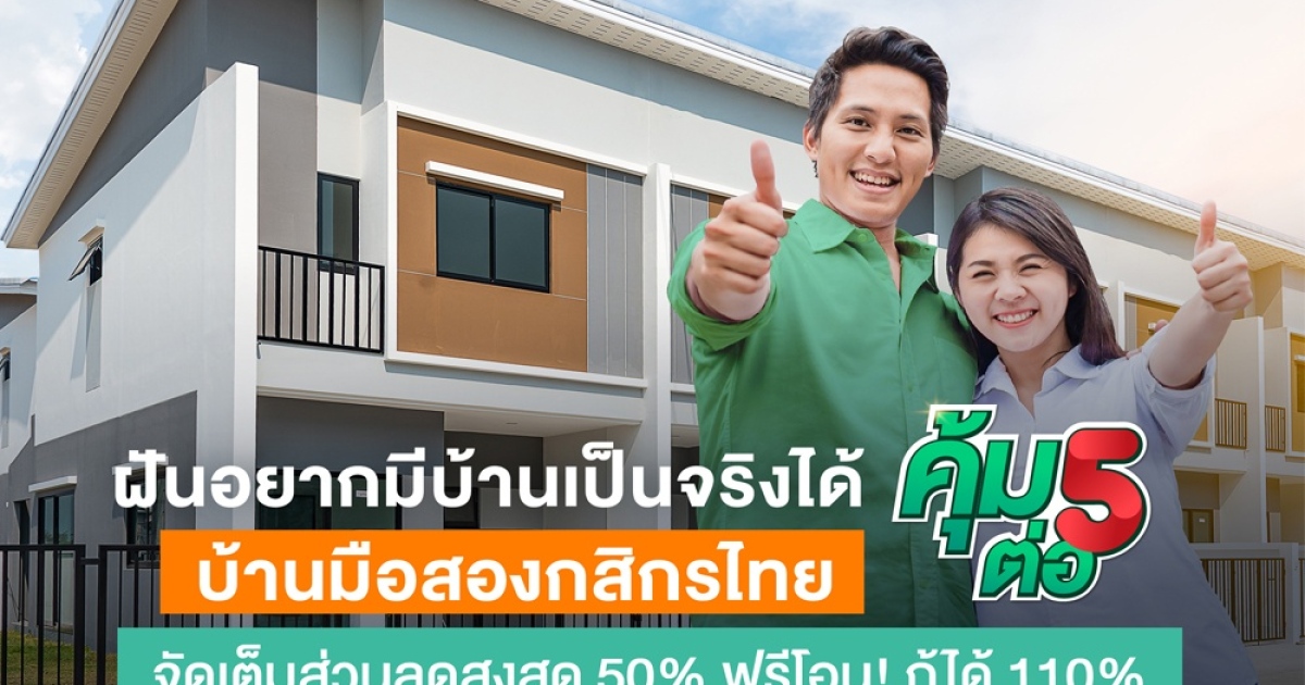 ธนาคารกสิกรไทยเติมฝันคนอยากมีบ้าน ปล่อยแคมเปญบ้านมือสองกสิกรไทย 'คุ้ม 5 ต่อ' คัดบ้านมือสองคุณภาพดี ทำเลเด่น ทั้งบ้านเดี่ยว ทาวน์เฮ้าส์ คอนโดมิเนียม อาคารพาณิชย์ ที่ดินเปล่า และทรัพย์เพื่อทำธุรกิจ เช่น โกดัง โรงงาน อพาร์ทเมนท์ ที่มีอยู่ทั่วประเทศ มาจัดเต็มความคุ้มด้วยโปรโมชันถึง 5 ต่อ