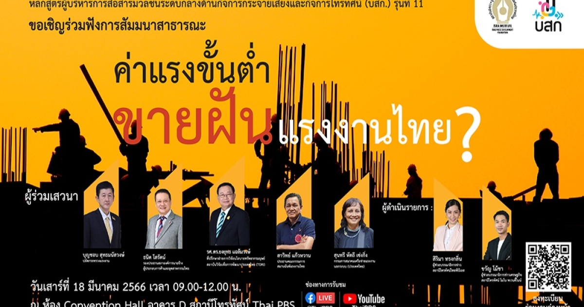 ในเวทีสัมมนาสาธารณะ 18 มีนาคม 2566 ตั้งแต่เวลา 09.00–12.00 น. ณ ห้อง Convention Hall อาคาร D สถานีโทรทัศน์ Thai PBS