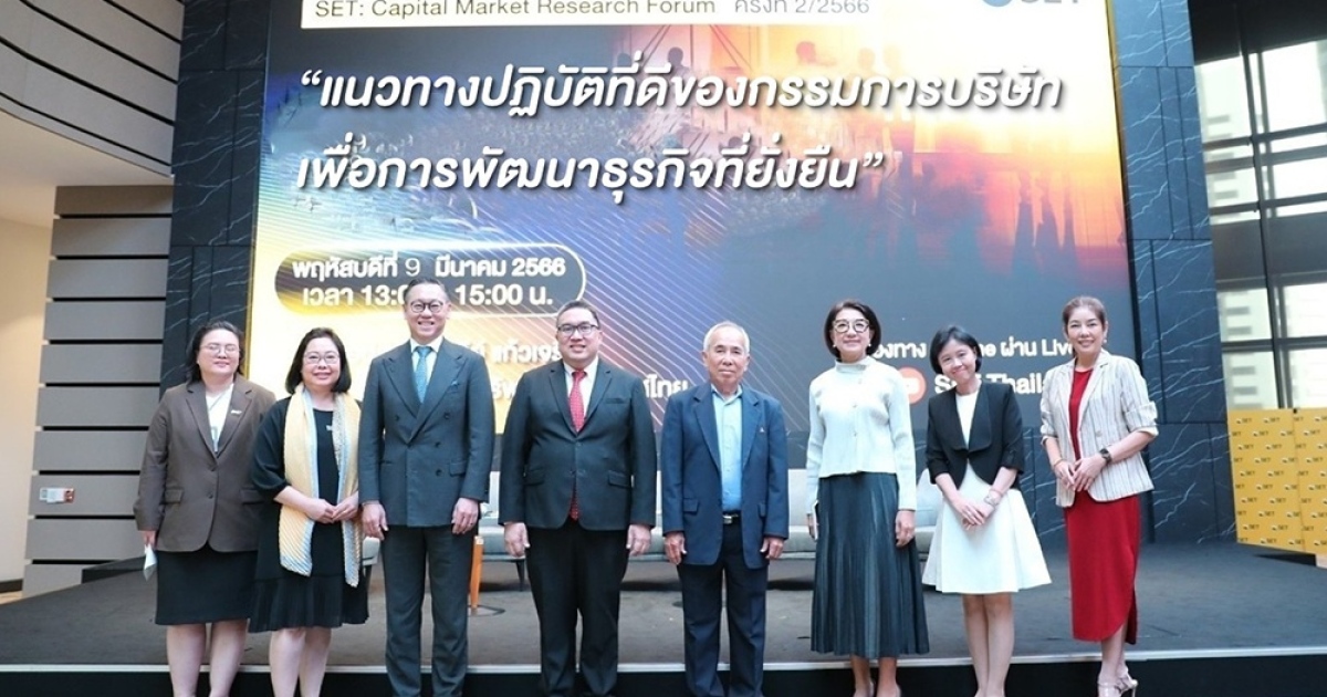 ดร. ศรพล ตุลยะเสถียร รองผู้จัดการ หัวหน้าสายงานวางแผนกลยุทธ์องค์กร ตลาดหลักทรัพย์แห่งประเทศไทย เปิดงานสัมมนา Capital Market Research Forum ครั้งที่ 2/2566 หัวข้อ 'แนวทางปฏิบัติที่ดีของกรรมการบริษัท เพื่อการพัฒนาธุรกิจที่ยั่งยืน' ซึ่งมีการนำเสนอผลการศึกษาความหลากหลายของคณะกรรมการ การปฏิบัติหน้าที่ การจ่ายค่าตอบแทนกรรมการและผู้บริหารบริษัทจดทะเบียนไทย ซึ่งจัดทำโดยฝ่ายวิจัย ตลาดหลักทรัพย์ฯ ร่วมกับคณะวิทยาการจัดการ ม. เกษตรศาสตร์ วิทยาเขตศรีราชา และได้รับเกียรติจากผู้เชี่ยวชาญด้านบรรษัทภิบาลในตลาดทุนไทยและสถาบันการศึกษา ร่วมแลกเปลี่ยนมุมมองเกี่ยวกับทิศทางการเปลี่ยนแปลงแนวทางปฏิบัติที่ดีของกรรมการบริษัทจดทะเบียนในไทยและต่างประเทศ ตลอดจนทิศทางงานวิจัยเพื่อตอบโจทย์การพัฒนาอย่างยั่งยืนของบริษัทจดทะเบียน