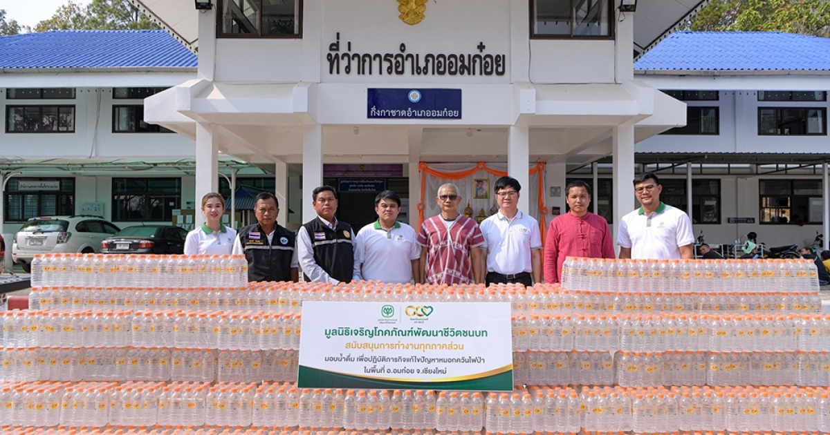 มูลนิธิเจริญโภคภัณฑ์พัฒนาชีวิตชนบท ห่วงใยสถานการณ์ไฟป่า อ.อมก๋อย จ.เชียงใหม่ มอบน้ำดื่มสนับสนุนภารกิจเจ้าหน้าที่ป้องกันไฟป่า หวังลดปัญหาฝุ่นควัน - PM 2.5 ในภาคเหนือ