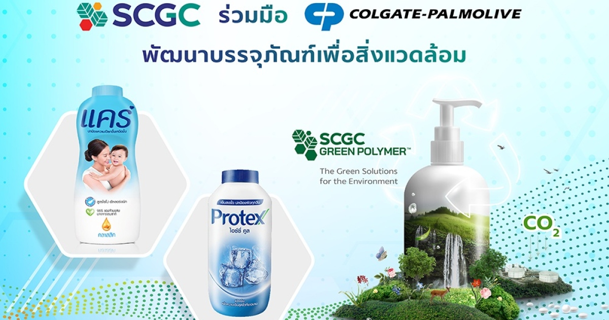 เอสซีจี เคมิคอลส์ หรือ เอสซีจีซี (SCGC) ร่วมกับ บริษัท คอลเกต-ปาล์มโอลีฟ (ประเทศไทย) จำกัด เดินหน้าพัฒนาบรรจุภัณฑ์ที่เป็นมิตรกับสิ่งแวดล้อมอย่างต่อเนื่องด้วยโซลูชันต่าง ๆ จาก เอสซีจีซี กรีน พอลิเมอร์ (SCGC GREEN POLYMER) เริ่มจากบรรจุภัณฑ์ที่ใช้เม็ดพลาสติกรีไซเคิลคุณภาพสูง (High Quality Post-Consumer Recycled Resin – PCR) สู่บรรจุภัณฑ์น้ำหนักเบาสำหรับสินค้ากลุ่มแป้ง ภายใต้แบรนด์แคร์ และโพรเทคส์ โดยใช้โซลูชันพลาสติกที่ให้ความแข็งแรงเป็นพิเศษจากเทคโนโลยี SMX™ ซึ่งแข็งแรงกว่าพลาสติกทั่วไปถึง 20% สามารถลดน้ำหนักของบรรจุภัณฑ์ได้สูงสุดถึง 8% โดยยังคงความแข็งแรงเท่าเดิม ช่วยลดการใช้ทรัพยากรตามหลักเศรษฐกิจหมุนเวียน และลดการปล่อยก๊าซเรือนกระจกอย่างยั่งยืน